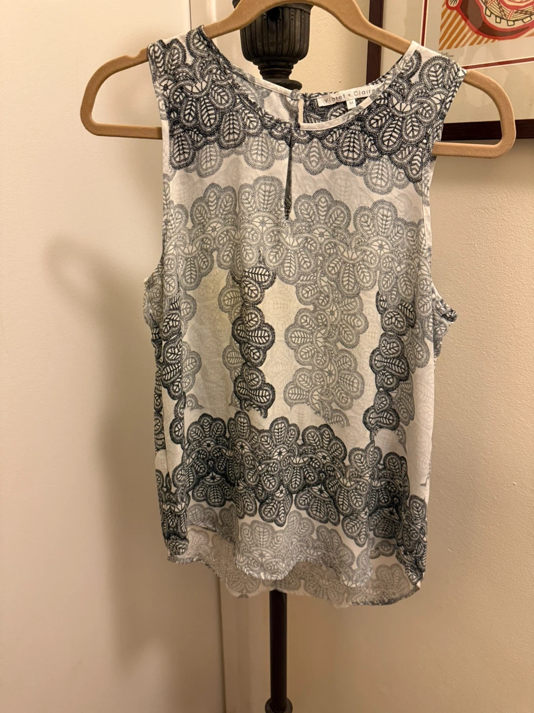 Selling a cute sleeveless top from Violet & Claire! It's a size medium and features a unique black and white pattern. Perfect for a casual day out or dressing up for a night out
