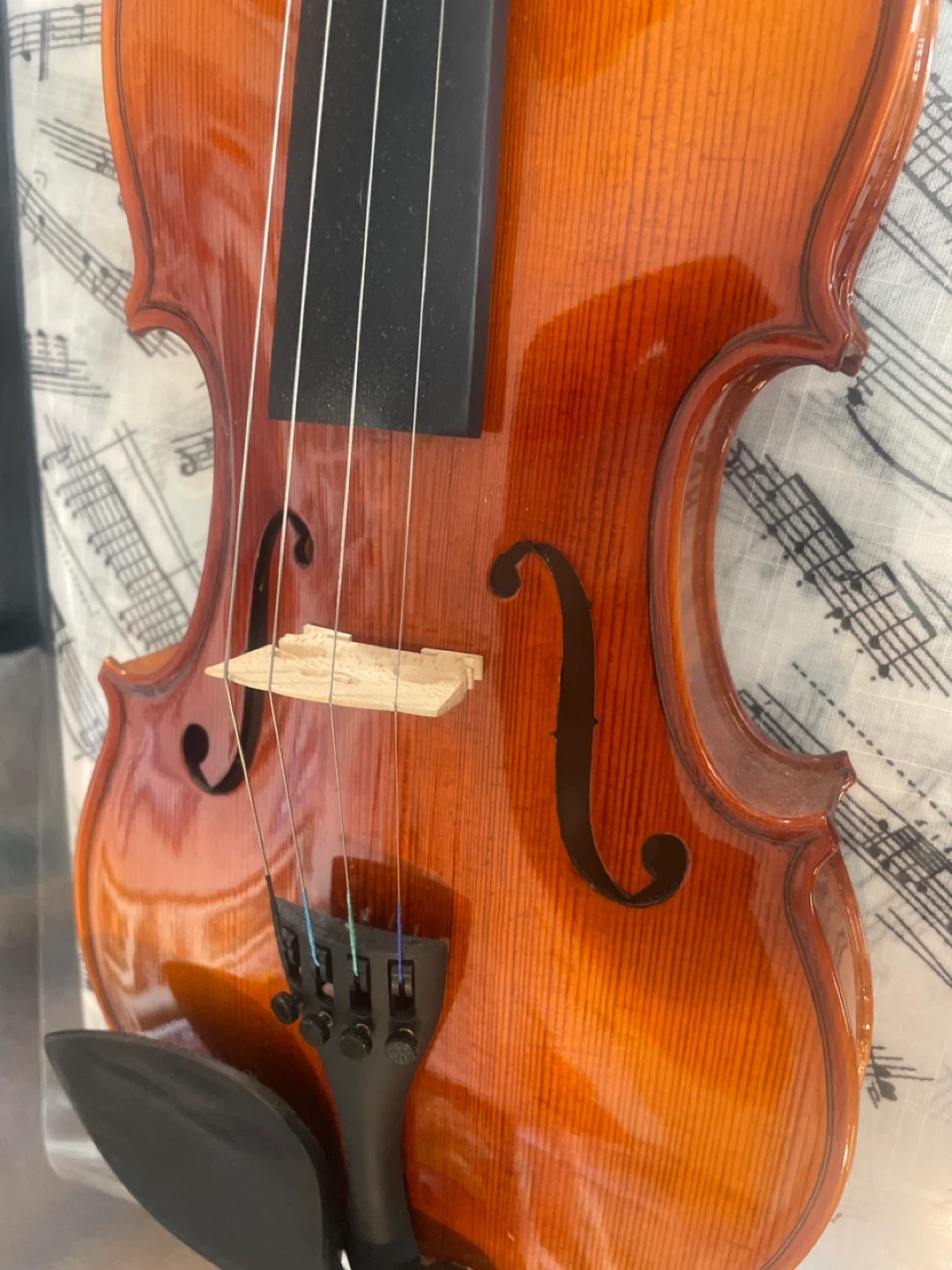 754/4 violin! Sounds good and is ready to play. The bridge might need to be replaced at some point as it is a little warped. I also have a bow available