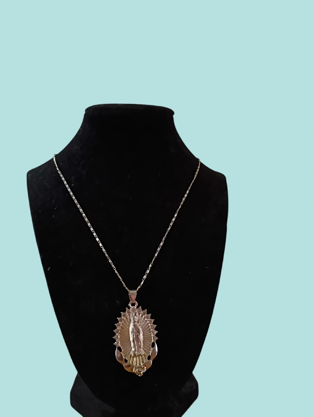Silver necklace with a Virgin Mary pendant. It's in great condition and ready to wear! The chain is delicate and the pendant has a nice shine