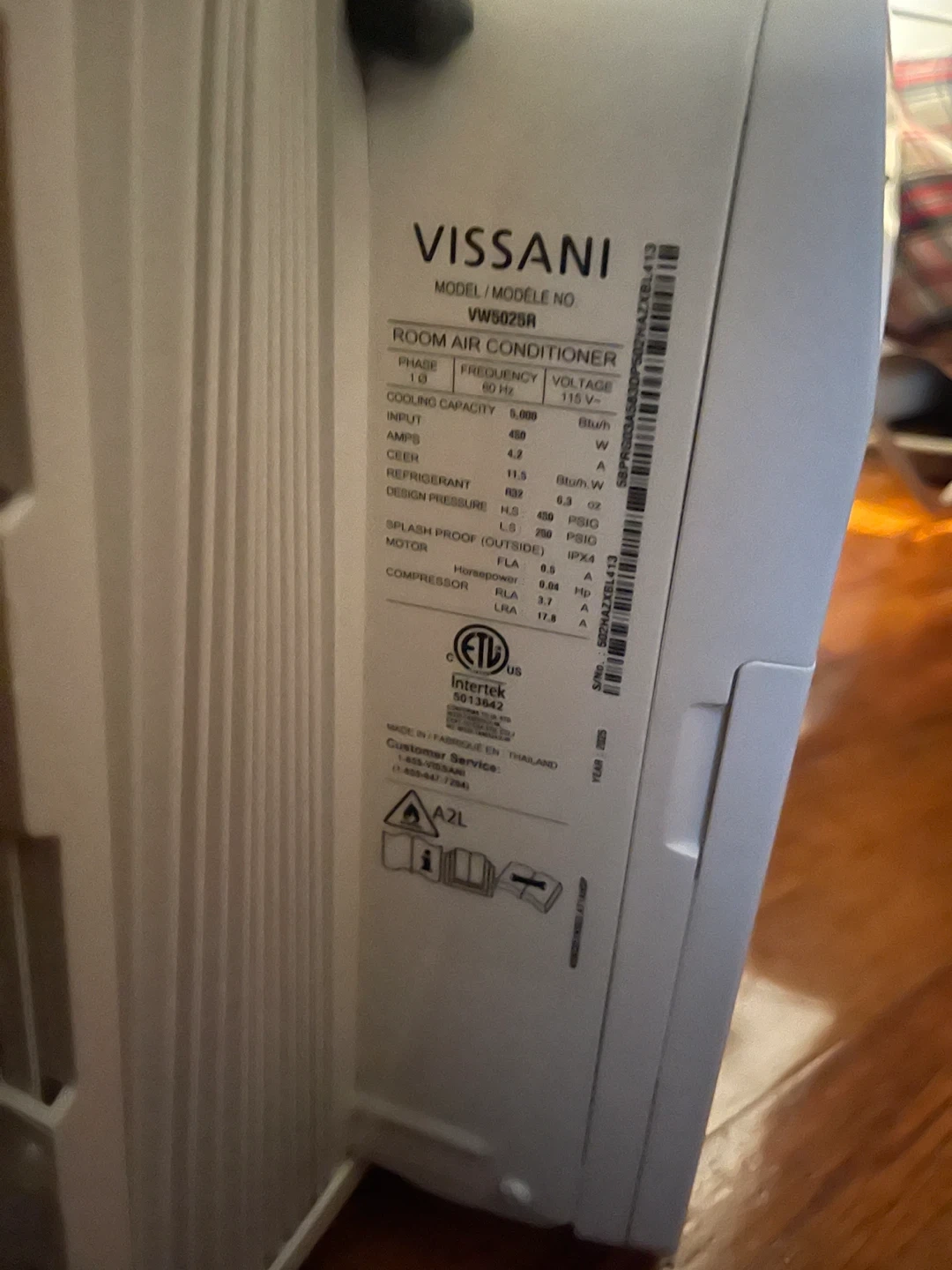 Selling a Vissani room air conditioner, model VW002SR. It's a great way to keep cool during the summer months. It has different fan speeds and modes for energy saving and cooling. Feel free to message me with any questions!