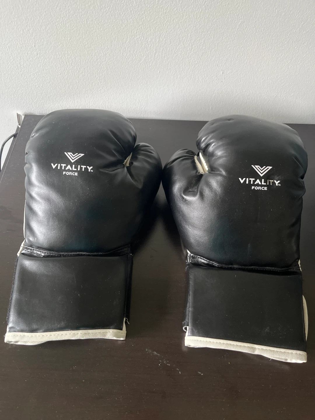 10Selling a pair of Vitality Force boxing gloves in black and white. They are in great condition and ready for a new owner. Perfect for sparring or training!
