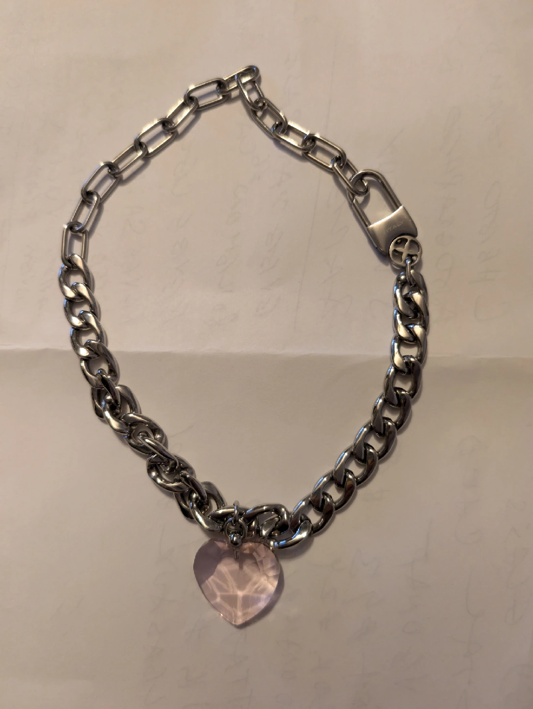 326Selling a Vitaly padlock chain necklace. It's in great condition and would make a stylish addition to any outfit! Choken featuring an oversized pink acrylic heart finished with our signature glyph carabineer clasp and an adjustable sizing chain. Material stainless steel and acrylic.
