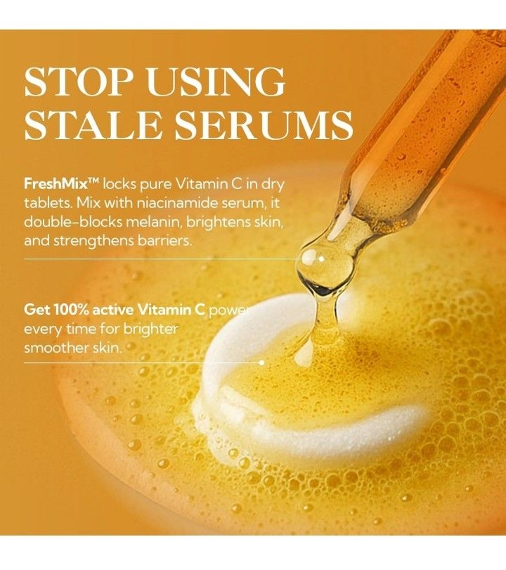 Non-Oxidizing Vitamin C Serum 10%: Niacinamide Serum + Freeze-Dried Tablets, Brightening Anti-Aging Essence for Sensitive Skin, Non-Greasy, Reduces Dark Spots & Wrinkles (30 Tabs/1.05 Oz)
