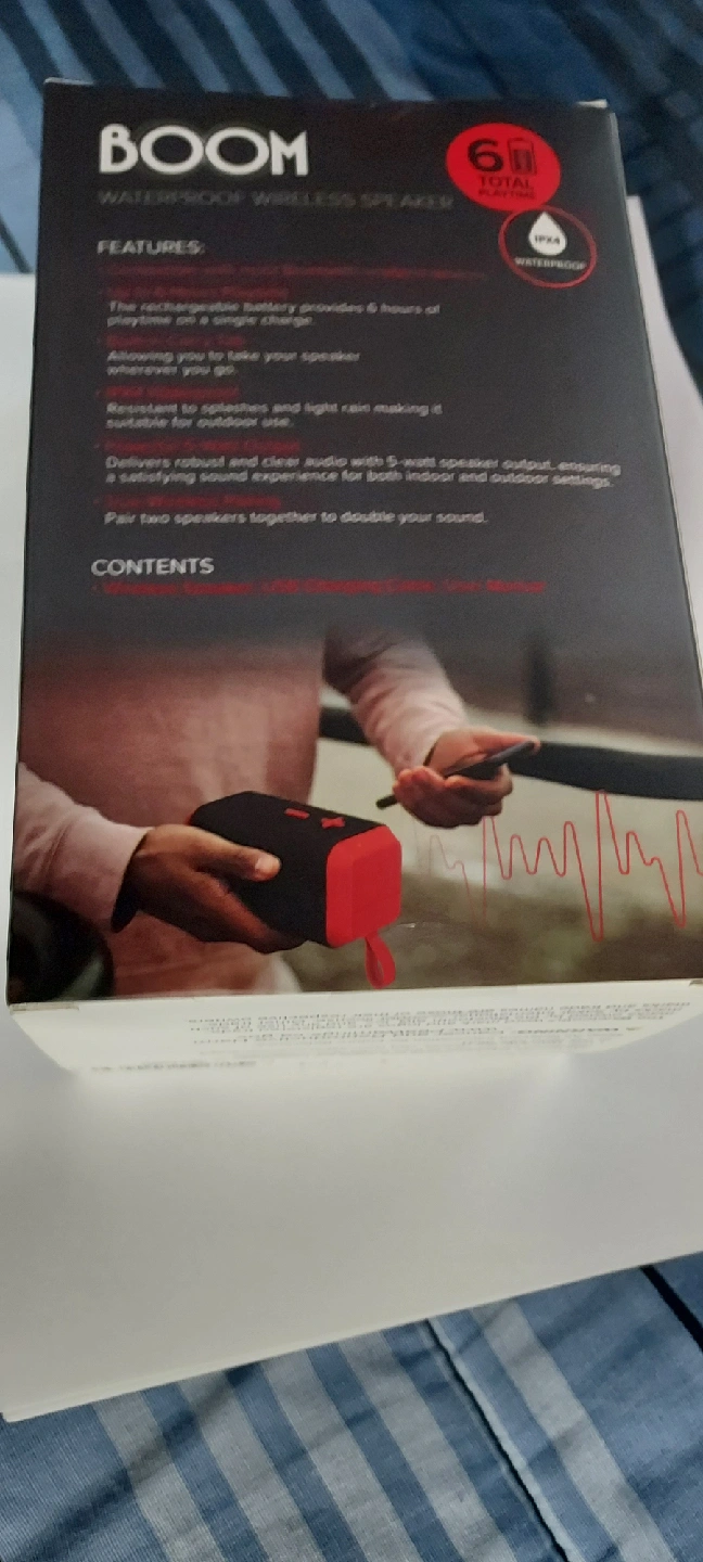 65Selling a brand new VIVITAR Boom waterproof wireless speaker! It's still in its original packaging. Key features include: - IPX4 waterproof rating - Built-in carry tab - 5 watts of power - True wireless pairing The rechargeable battery provides 6 hours of playtime, making it great for outdoor use