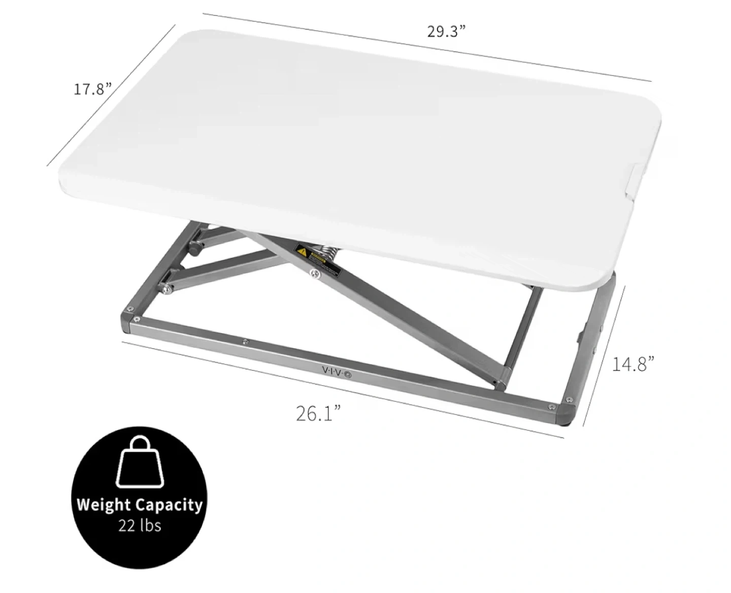 60I'm selling a VIVO standing desk converter in white! It's in great condition and ready to help you work more comfortably. - Dimensions: 29.3" x 17.8" surface - Weight Capacity: 22 lbs