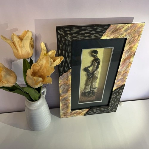 Intricately detailed 3D relief sculpture with metallic gold jewelry and textured garments. Matching textured frame with a modern black-and-gold abstract pattern. Afrocentric, Tribal, Contemporary, or Boho-Chic style. Represents the universal bond of motherhood, protection, and love. Excellent condition, ready to hang. Perfect for a living room focal point, hallway, or a thoughtful nursery/motherhood gift.