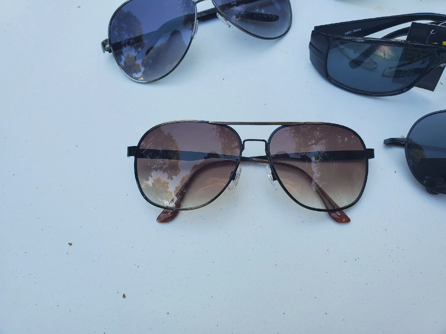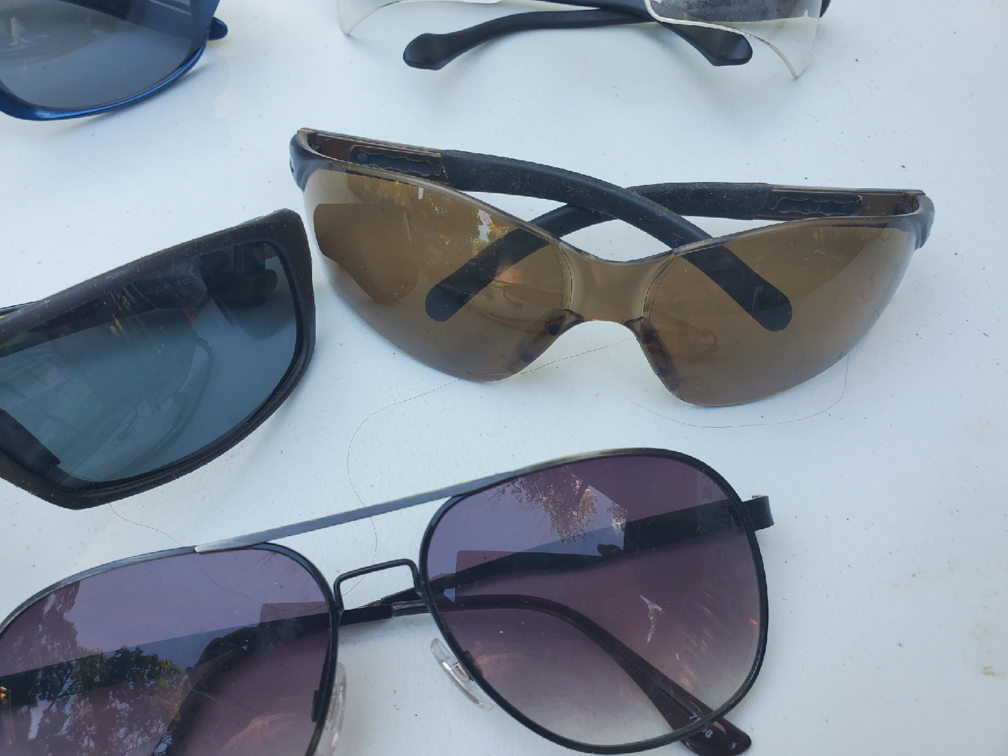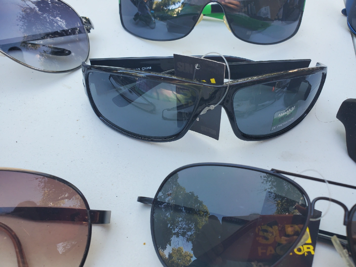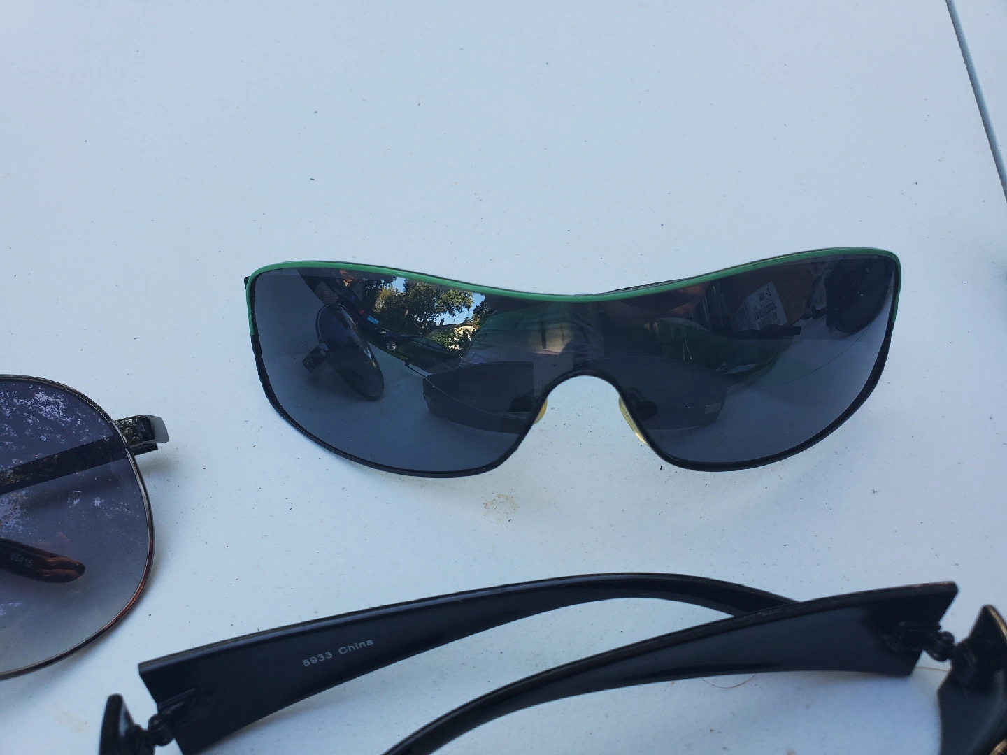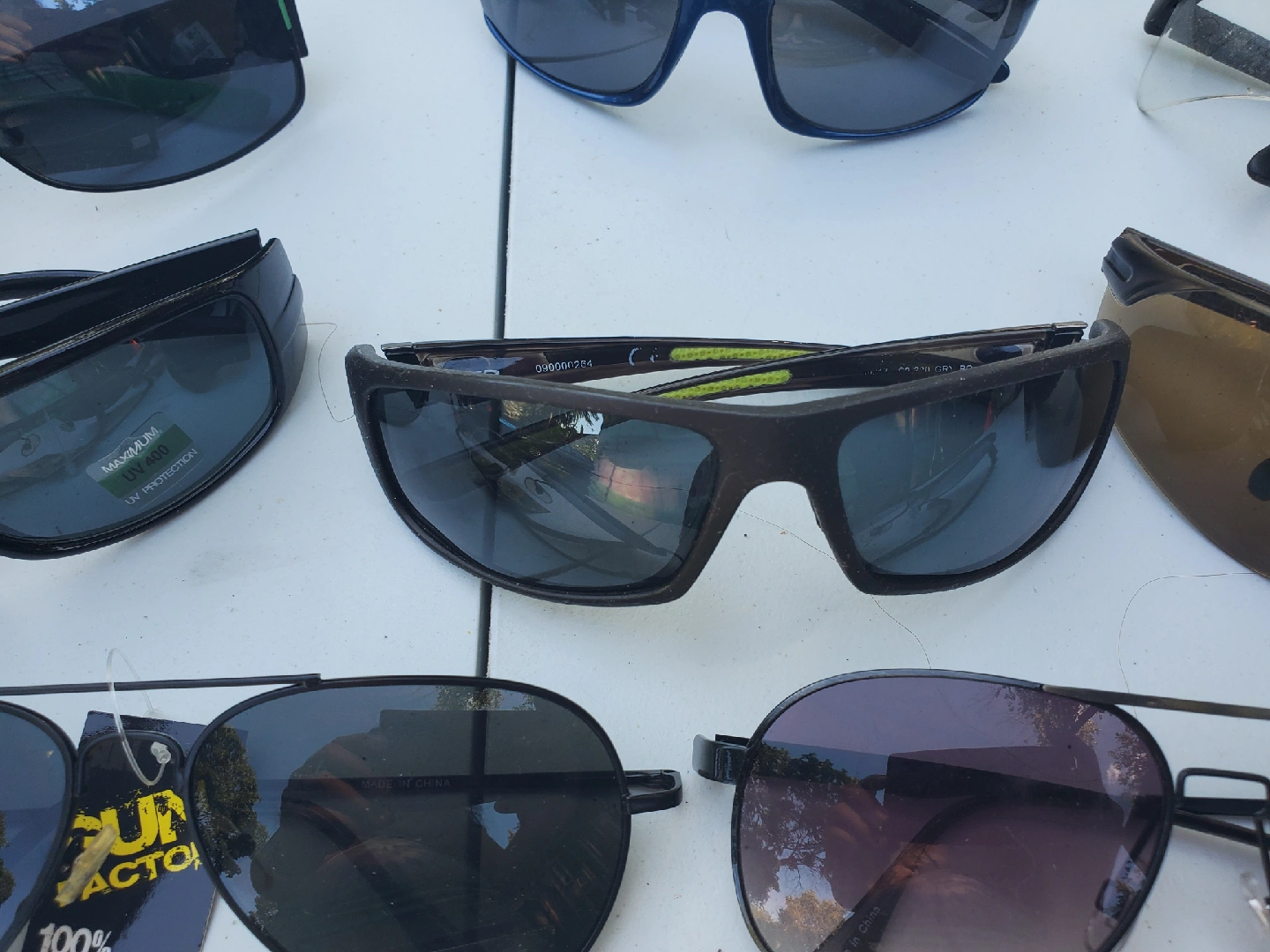 Selling a collection of sunglasses in various styles, and one pair of safetyglasses. Some are in used condition, some are new with tags and ready for a new home! Check out the photos to see the different designs. all for 14 or 2 dollars a piece.
