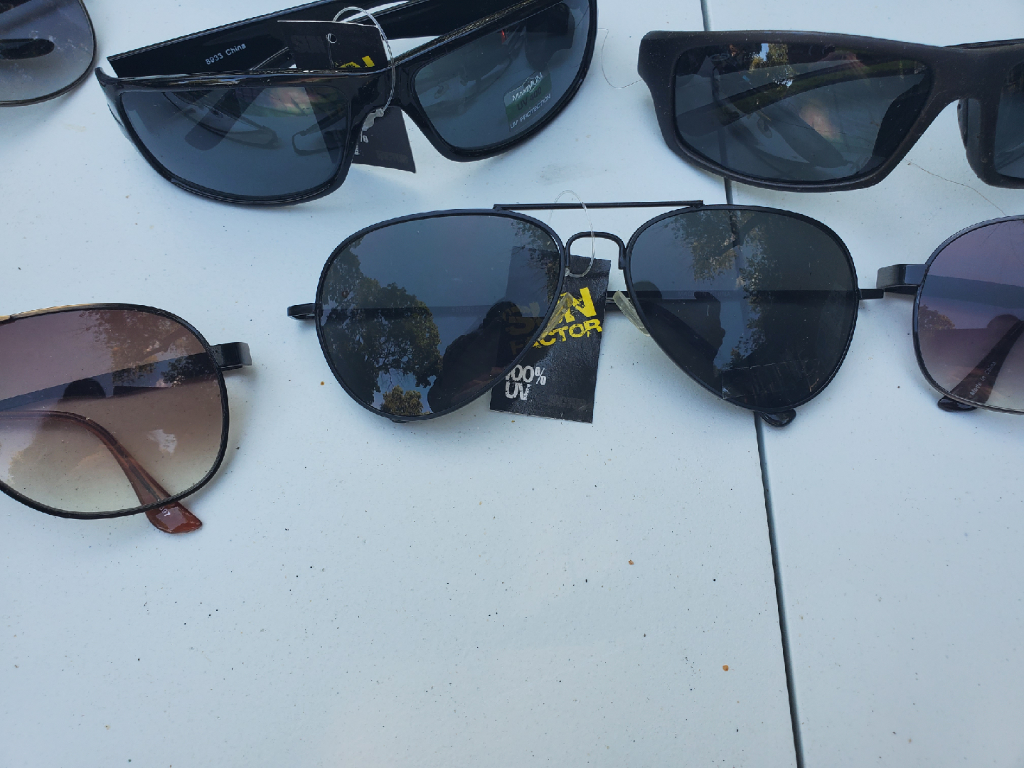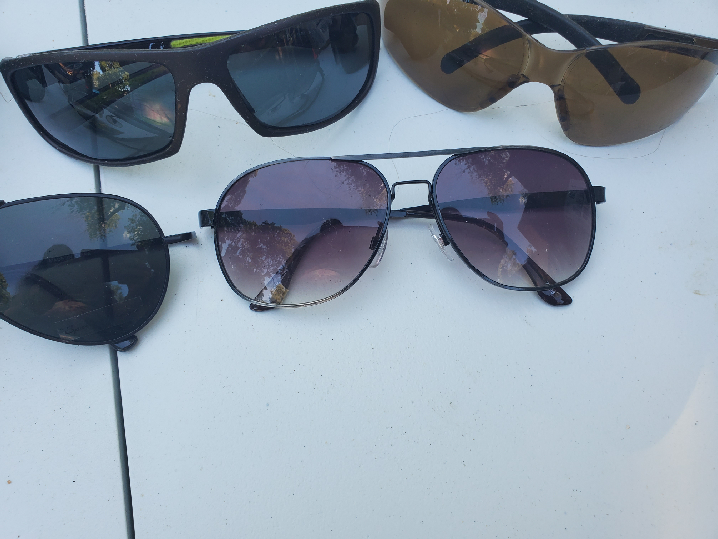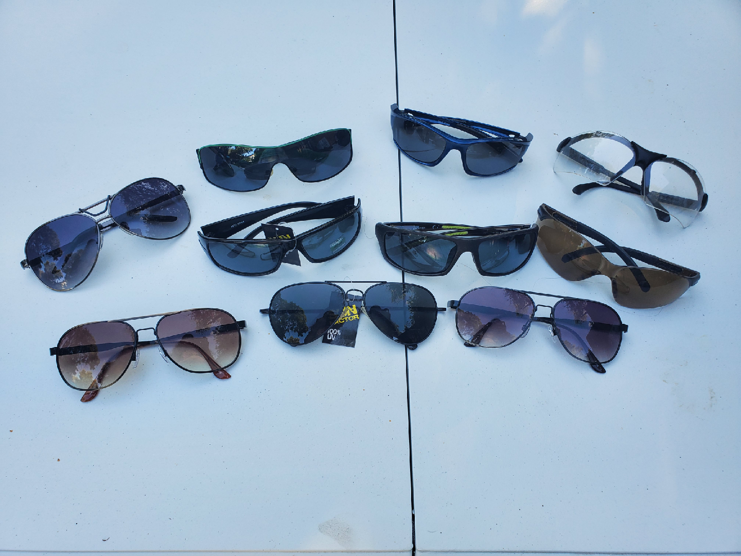 Selling a collection of sunglasses in various styles, and one pair of safetyglasses. Some are in used condition, some are new with tags and ready for a new home! Check out the photos to see the different designs. all for 14 or 2 dollars a piece.