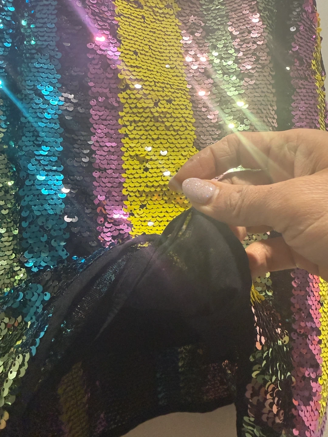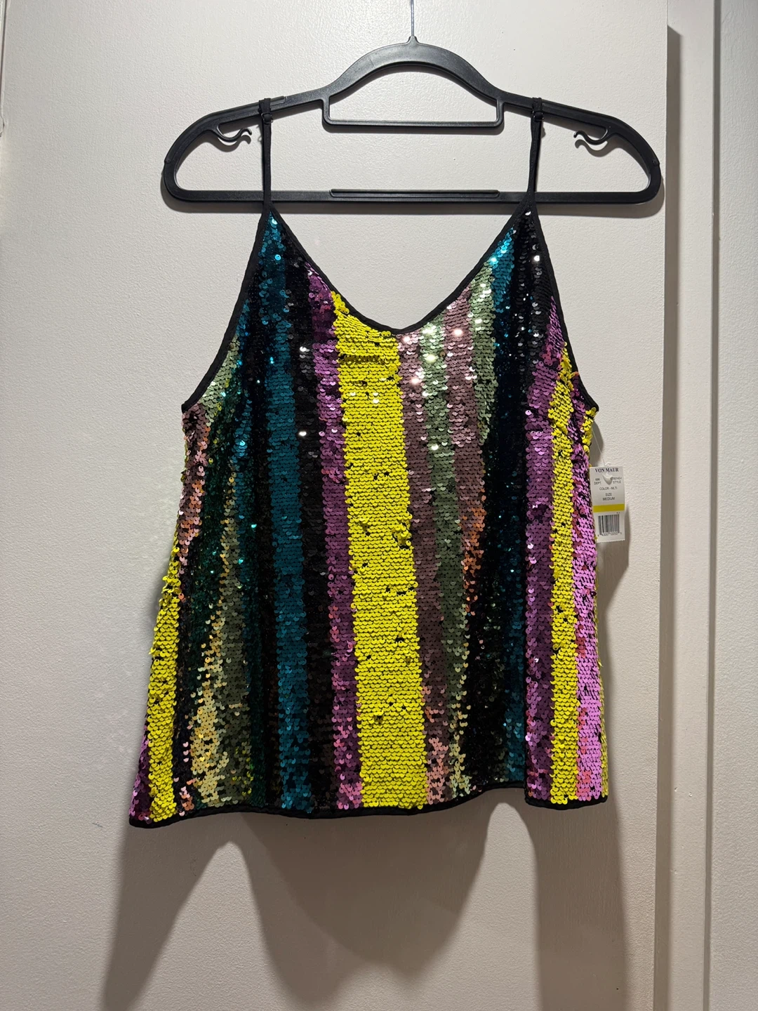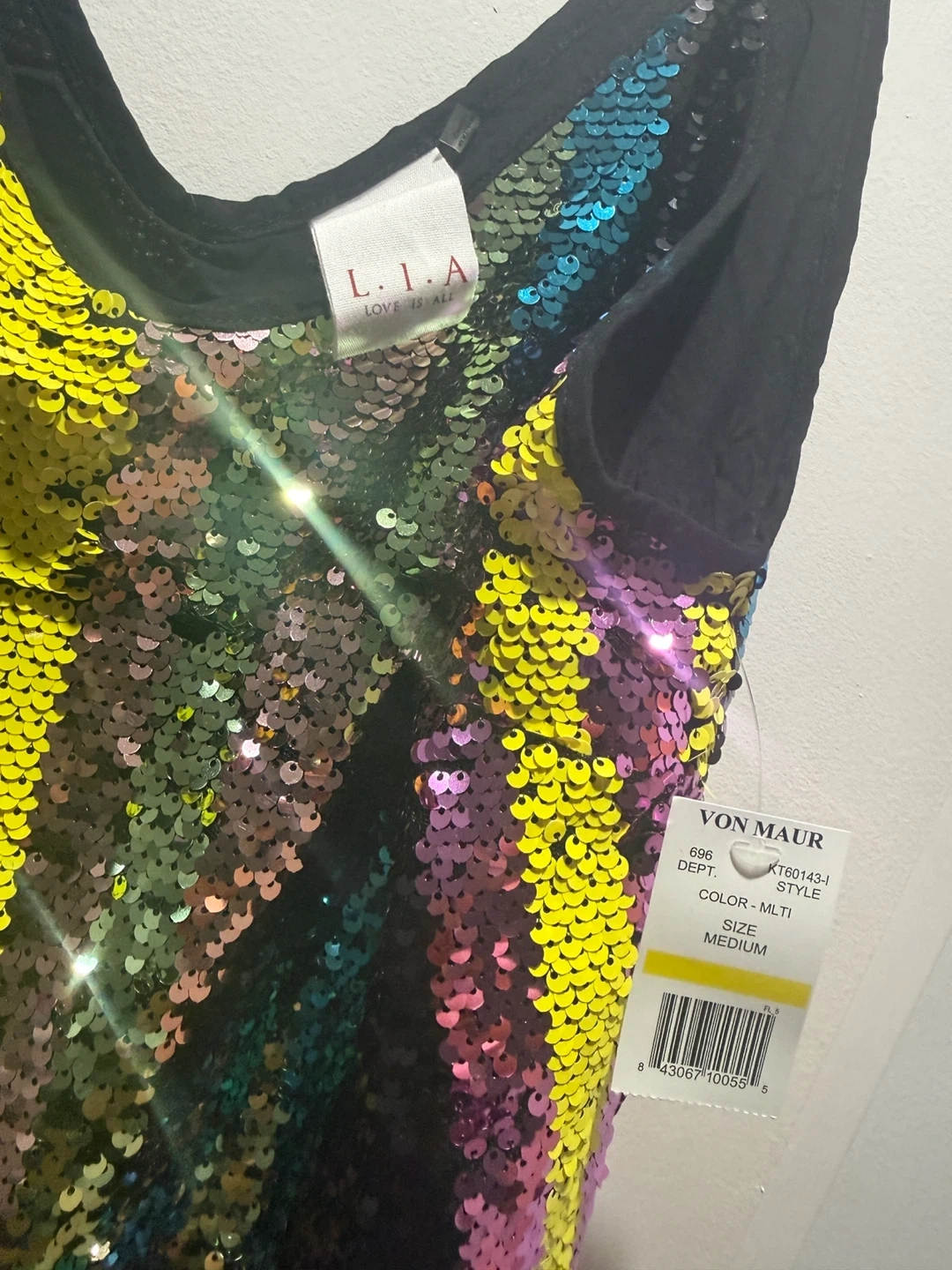 Here's a fun and sparkly sequin tank top from L.I.A. Love is All! It's a size medium and features a colorful multi-sequin design. Perfect for adding some shimmer to your wardrobe!