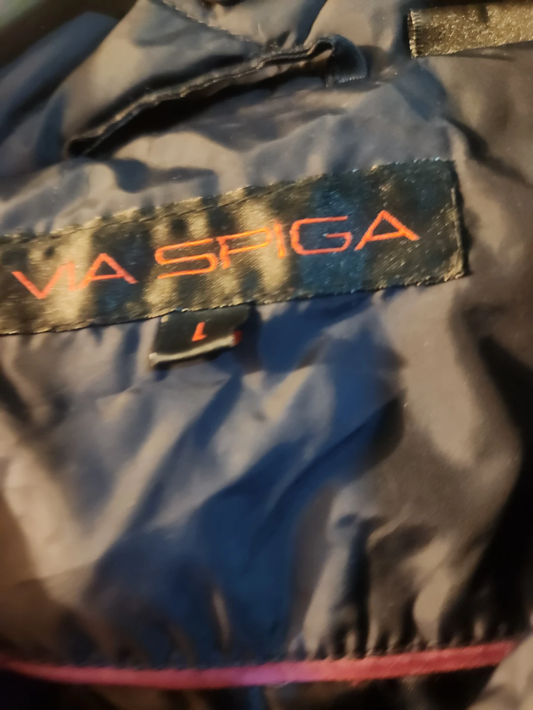 Quilted navy jacket by Via Spiga. Full zip front with a stand-up collar. Size L.