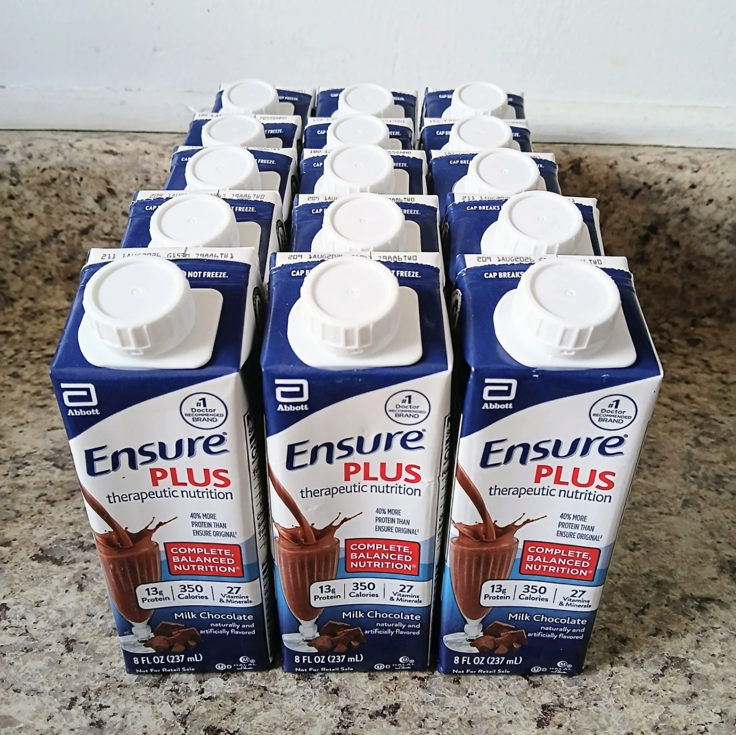 This is a 15-pack of Ensure PLUS therapeutic nutrition in Milk Chocolate flavor. Each 8 FL OZ (237 mL) carton contains 13g of protein, 350 calories, and 27 vitamins & minerals. It's naturally and artificially flavored. This product is not for retail sale.