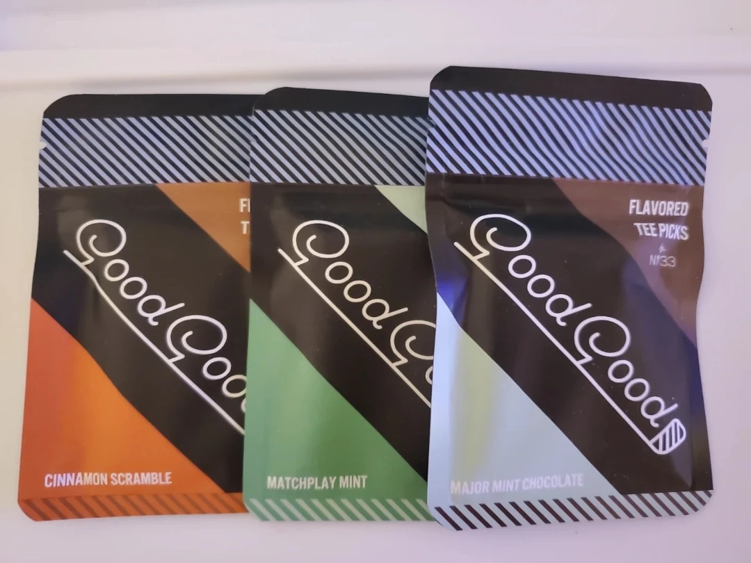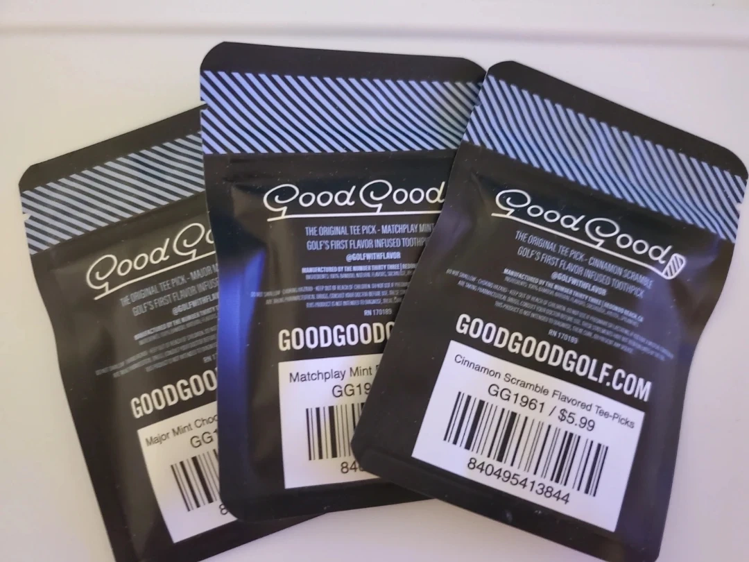 Selling a set of GoodGood flavored golf tee picks! You'll get three packs: Cinnamon Scramble, Matchplay Mint, and Major Mint Chocolate. Golf's first flavor infused toothpick!