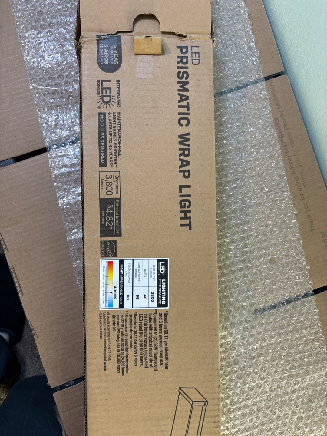 Integrated LED Prismatic Wrap Light. Maintenance-free and no bulbs required. 3,800 lumens brightness. 5-year warranty included.