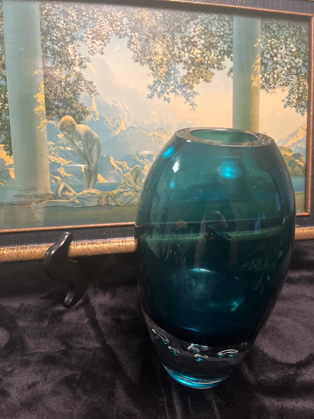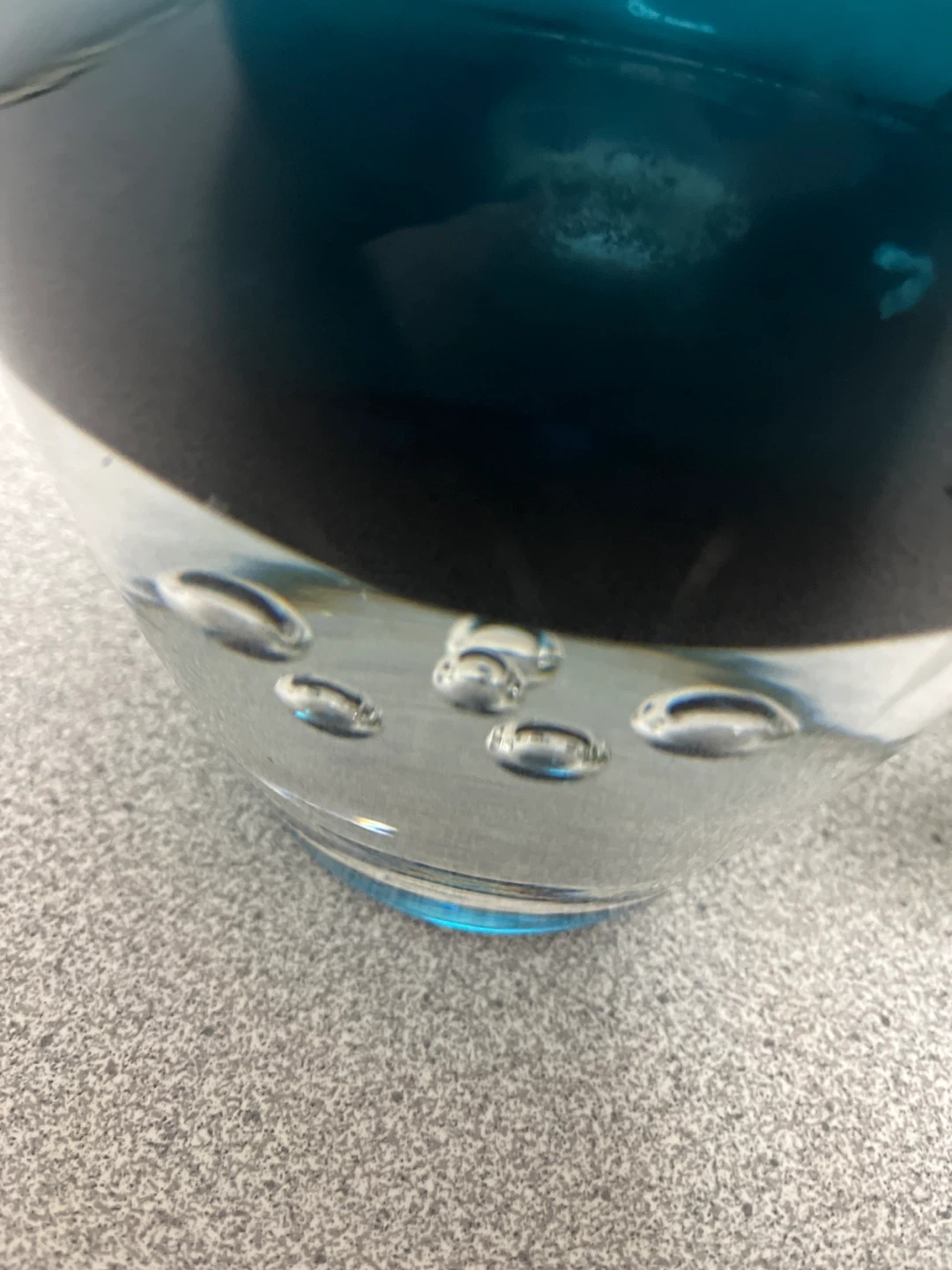 Teal Blue Glass Vase with Bubbles