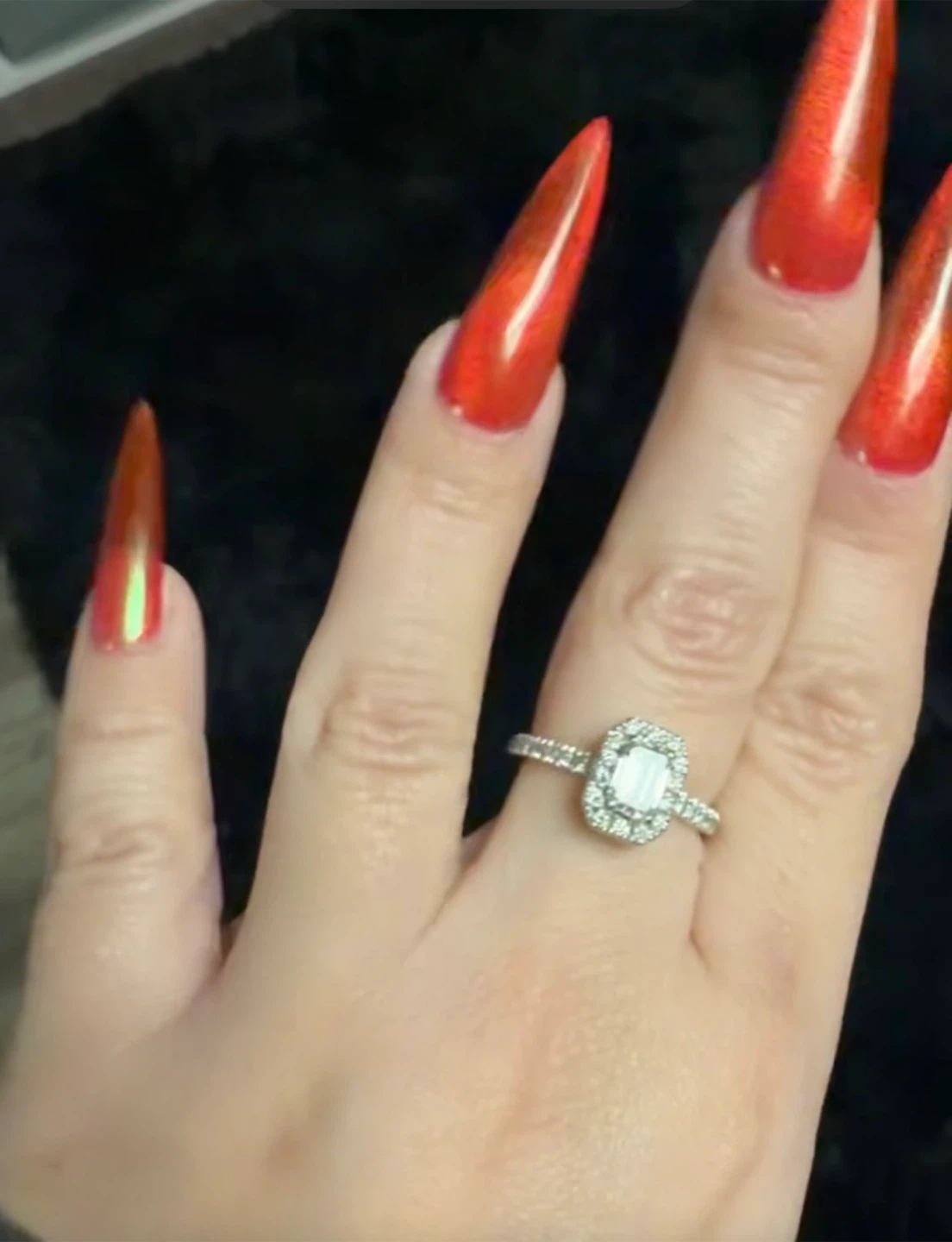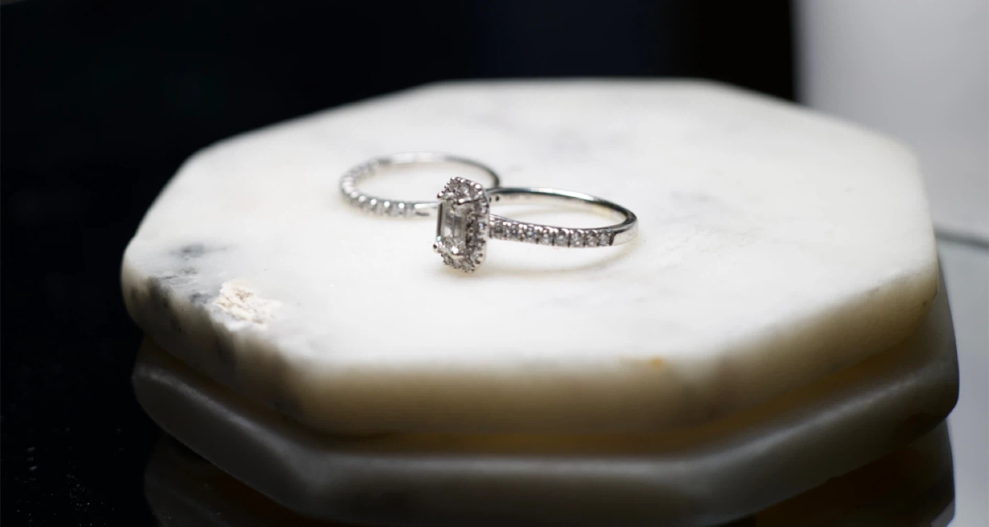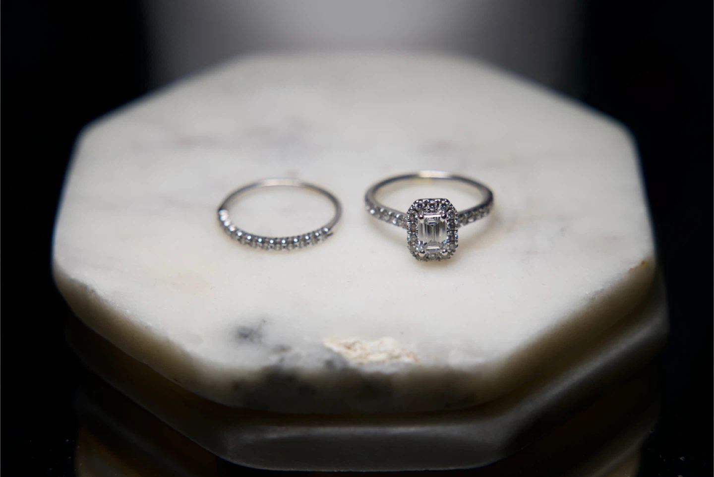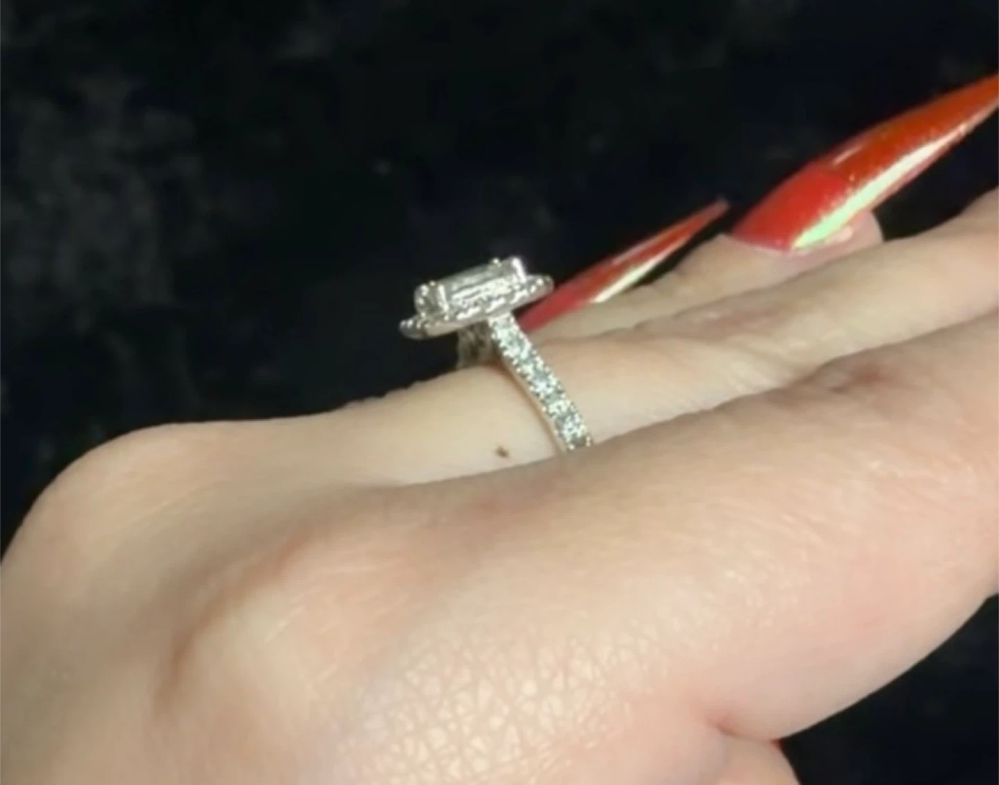 New wedding ring set, size 6.5 Dazzle her with a radiant sparkle that lasts forever with this stunning lab grown diamond engagement ring. Crafted in timeless 14K white gold, this ring boasts emerald-cut center diamond complemented by 46 round brilliant cut lab grown diamonds. Proudly graded with the highest industry standards, each lab grown diamond boasts GCAL-certified greatness.