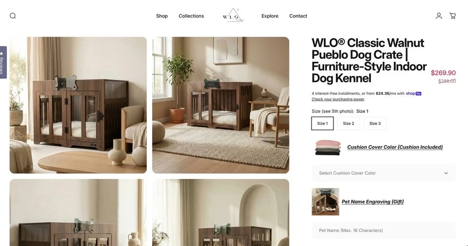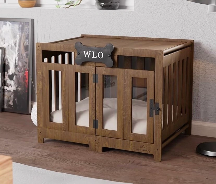 WLO Modern wood dog, cat, pet Pueblo crate + washable fluffy mat