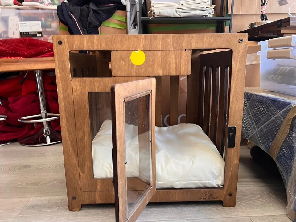 Orig $299 WLO Modern wood dog, cat, pet crate + washable mat