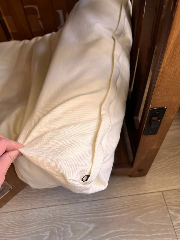 Prettier than a metal crate with a comfy mat (with washable cover that unzips)