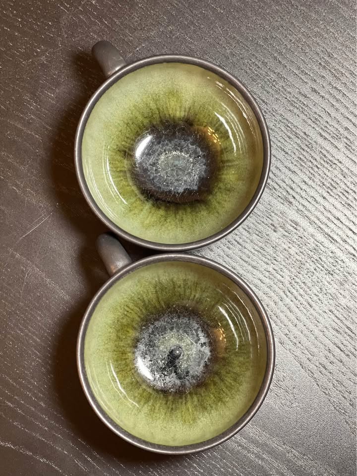 Features: The cups feature a signature green glaze on the interior that runs down to pool at the bottom of the cup.