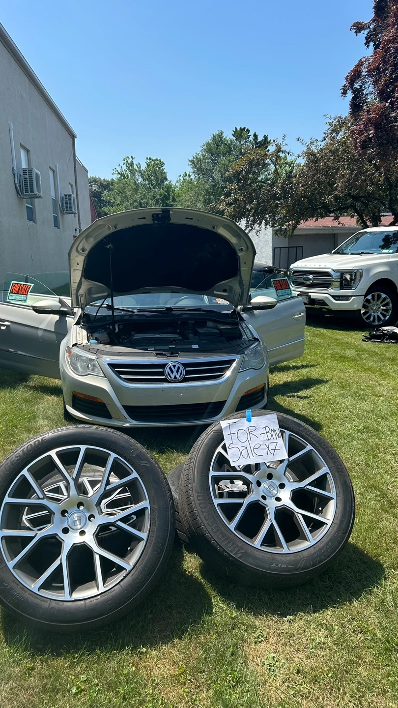 Selling a Volkswagen CC car along with a set of wheels. The car appears to be in good condition. Perfect for someone looking for a reliable vehicle and extra wheels!