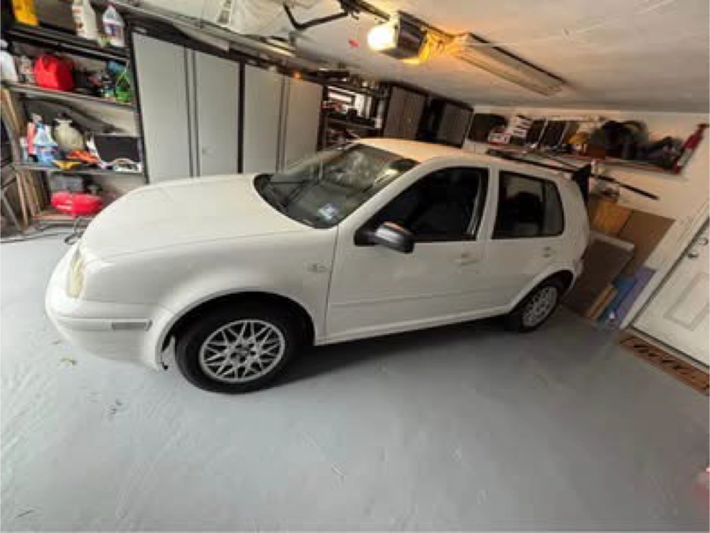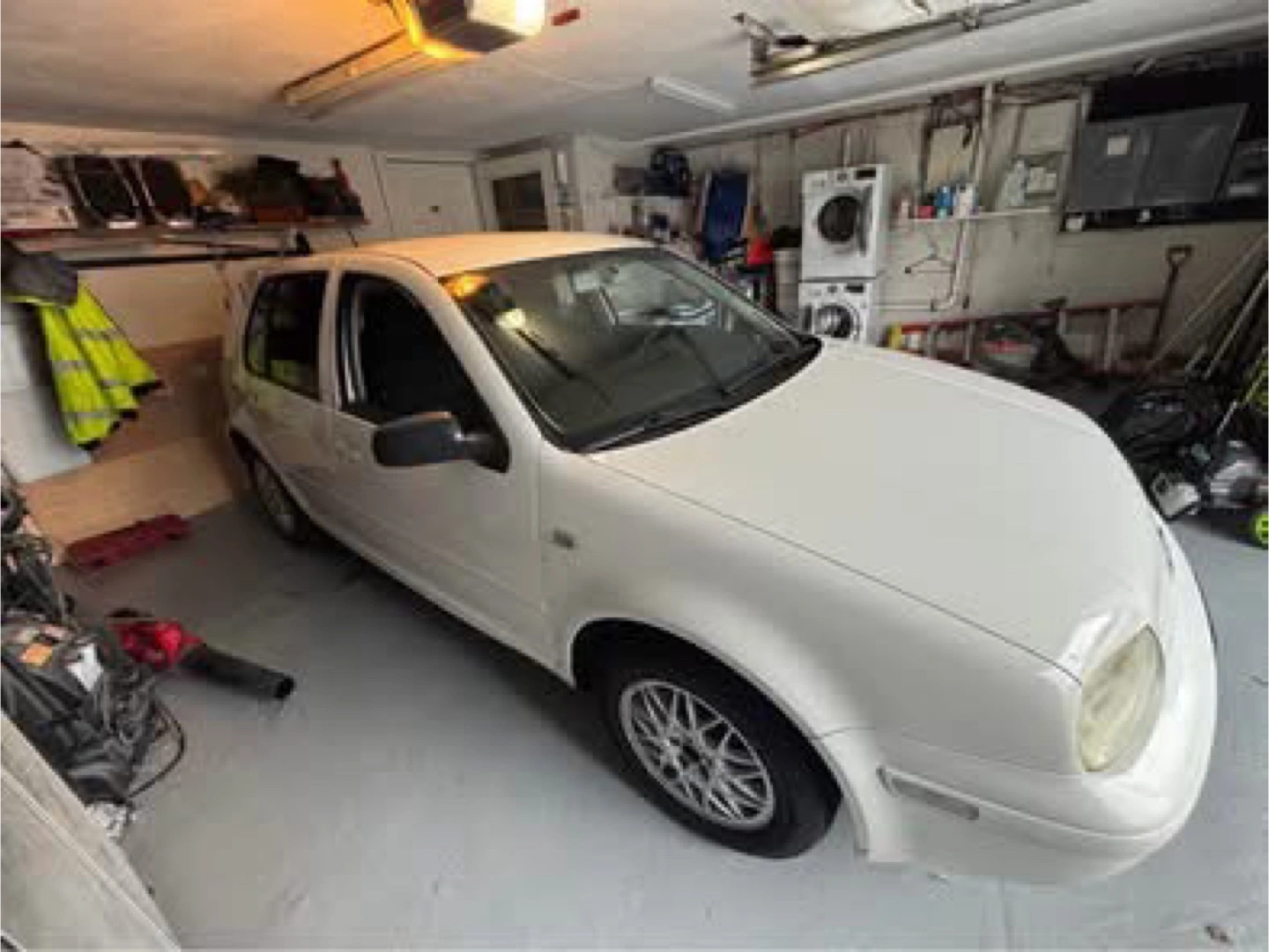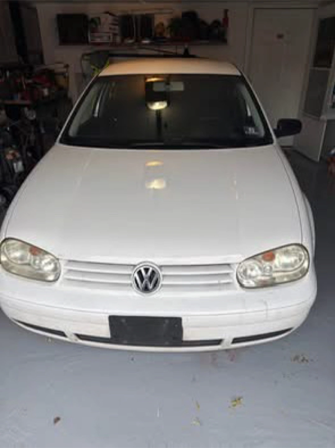 Selling a 2003 Volkswagen Golf. It's white and appears to be in used condition. It has a 2.0 engine. 197,319 miles