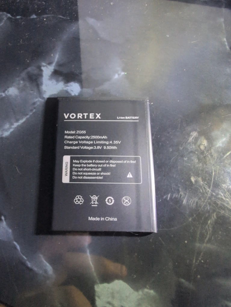 Selling a brand new Vortex ZG55 Li-Ion battery. It has a rated capacity of 2500mAh, a charge voltage limiting of 4.35V, and a standard voltage of 3.8V. It's 9.50Wh.