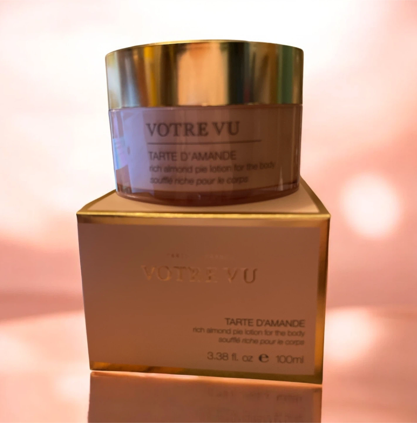 23Selling a Votre Vu Tarte D'Amande rich almond pie lotion for the body. It comes in a 3.38 fl oz (100ml) size and is handcrafted in small batches. The lotion is not tested on animals and comes in the original box. Yes…brand new.