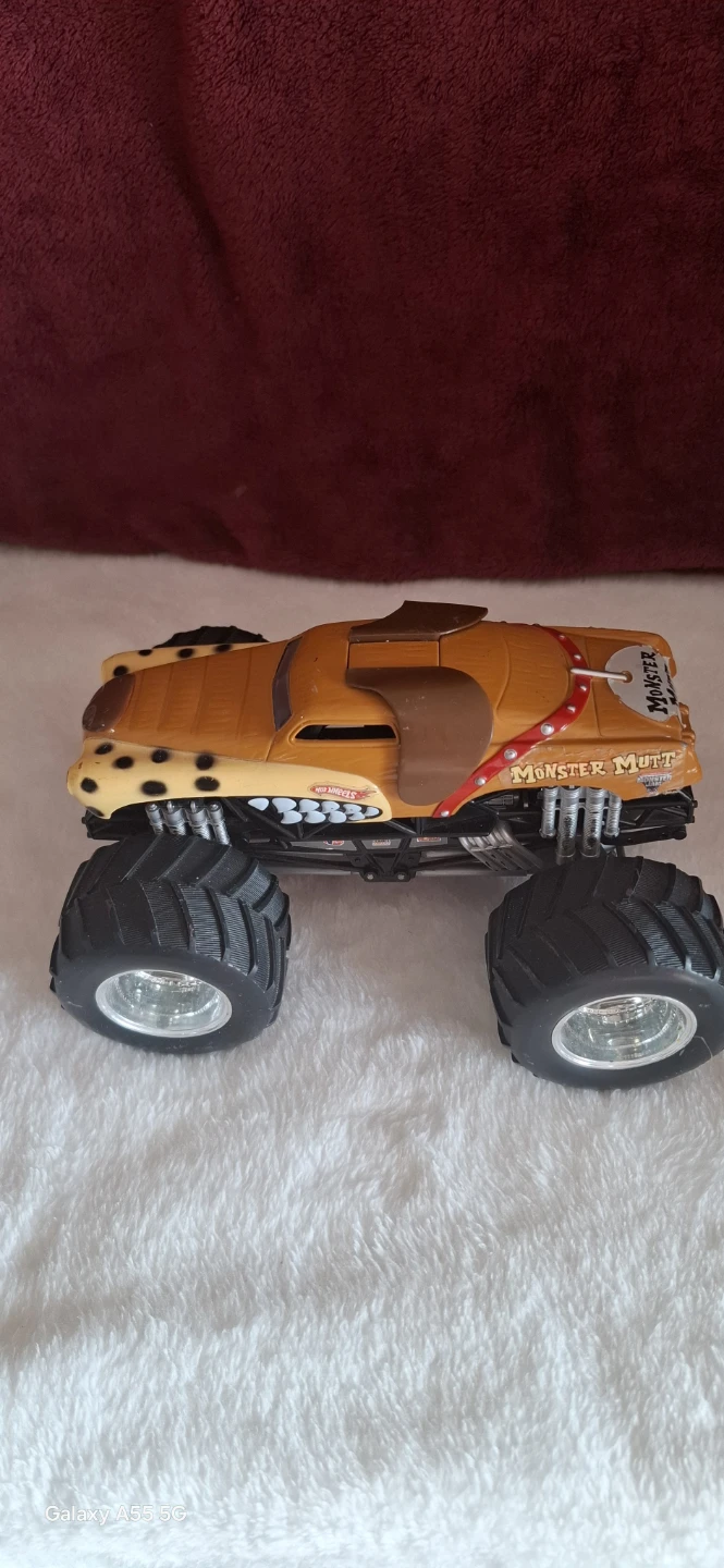Here's a Monster Mutt Monster Jam truck 1/24 made by Mattel! It's in great condition and ready for a new home. The truck features a unique dog-like design with the words "Monster Mutt" on the side. It was made in 2004 by Mattel.