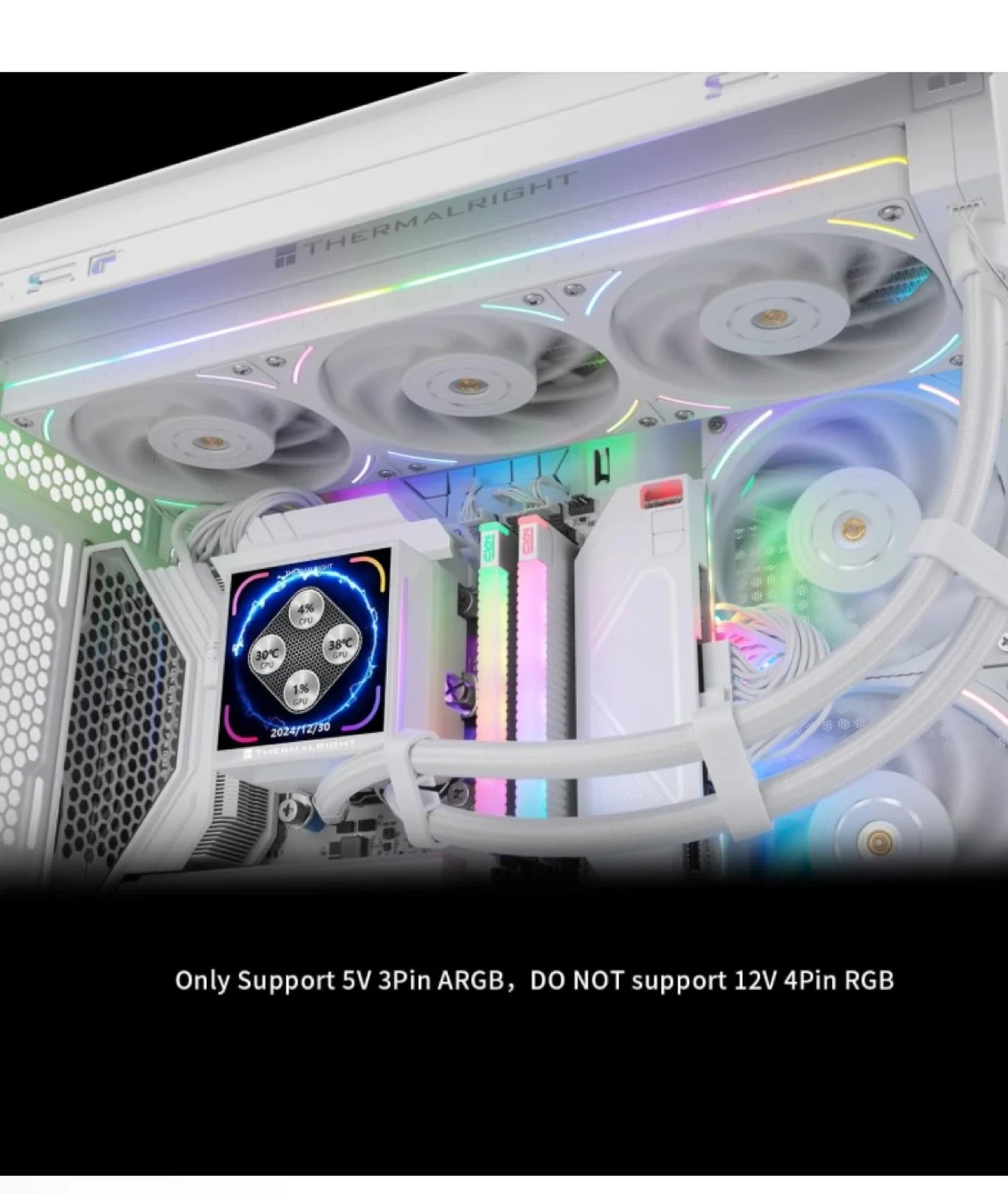 Selling a Thermalright Frozen Notte 360 White ARGB liquid cooler. It supports 5V 3Pin ARGB and does NOT support 12V 4Pin RGB. It will look great in your PC!