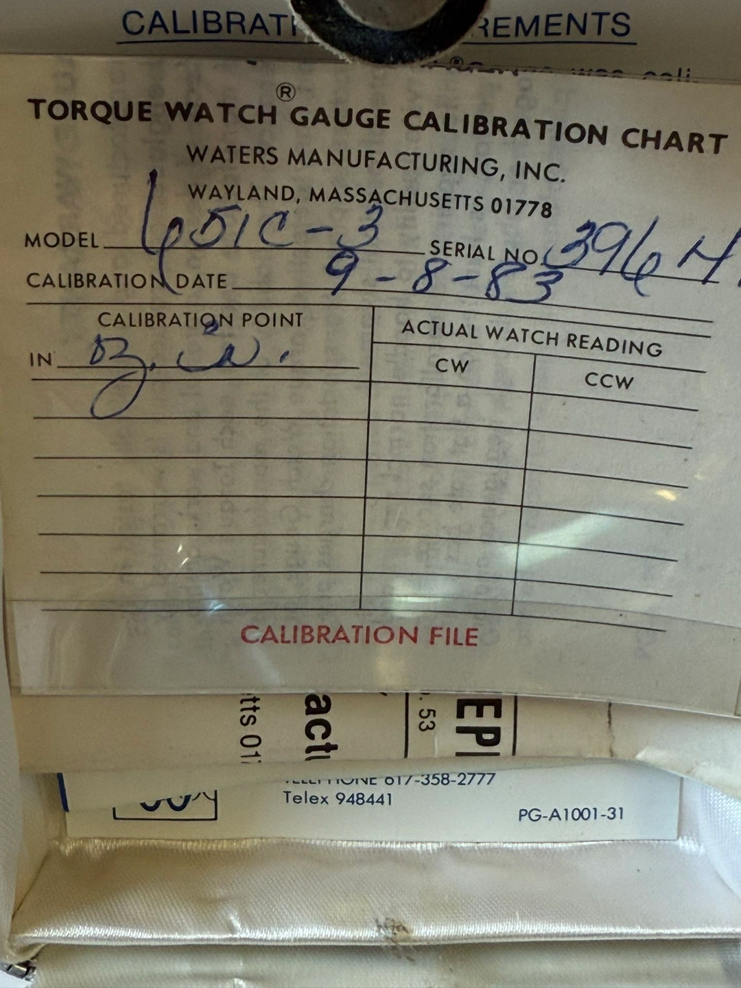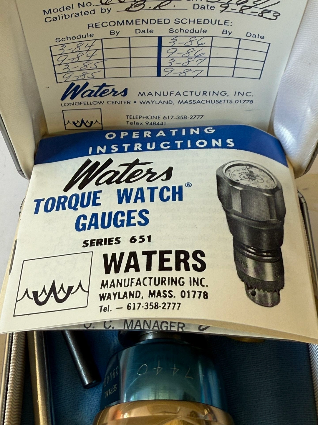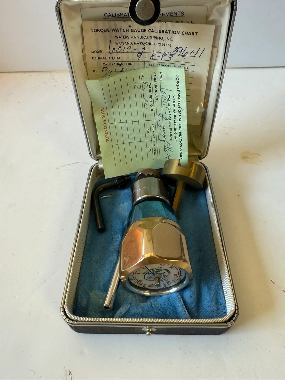 This is a Vintage Torque Watch Gauge. Waters Model 651 with case, instructions, and calibration sheet. Excellent used condition. Includes extras in box. Feel free to message if you have any questions!