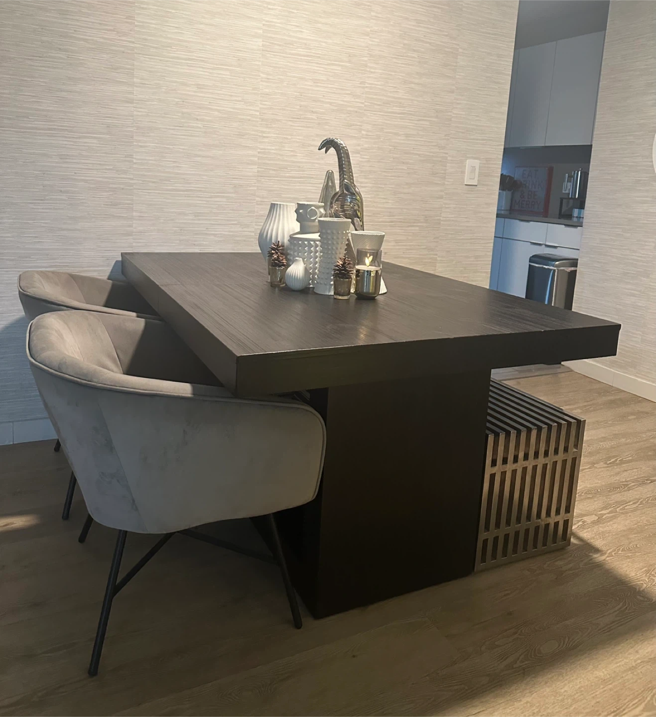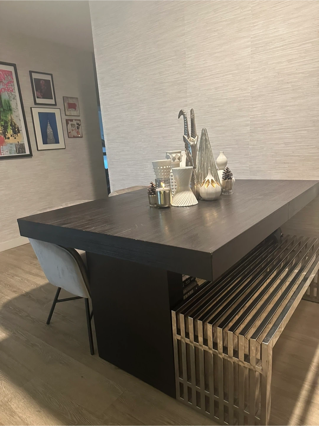 Selling a dark wood extendable dining table. It's in good condition and ready for a new home. This table would be a great addition to any dining room or kitchen!