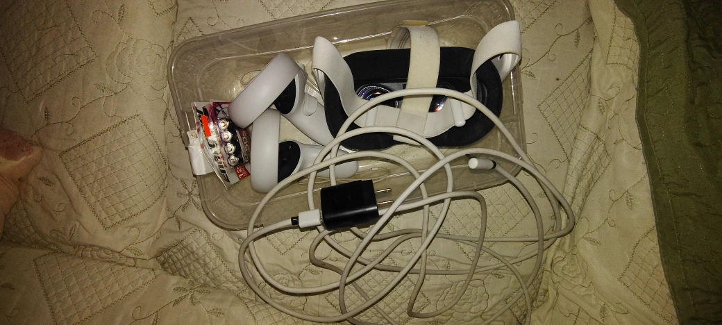 19VR headset with controllers and charging cable. White Turtle Beach headphones included. Used, good condition. Great for gaming.
