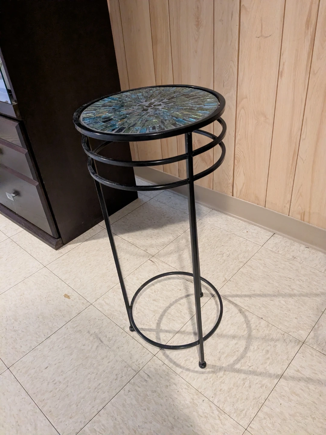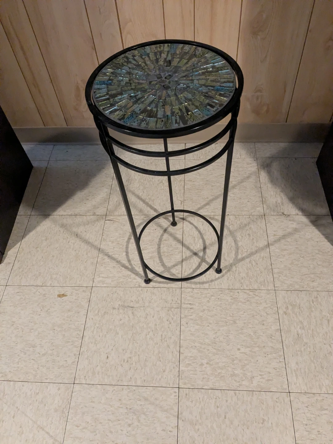 Decorative Metal Accent / Plant Stand – Mosaic Glass Top