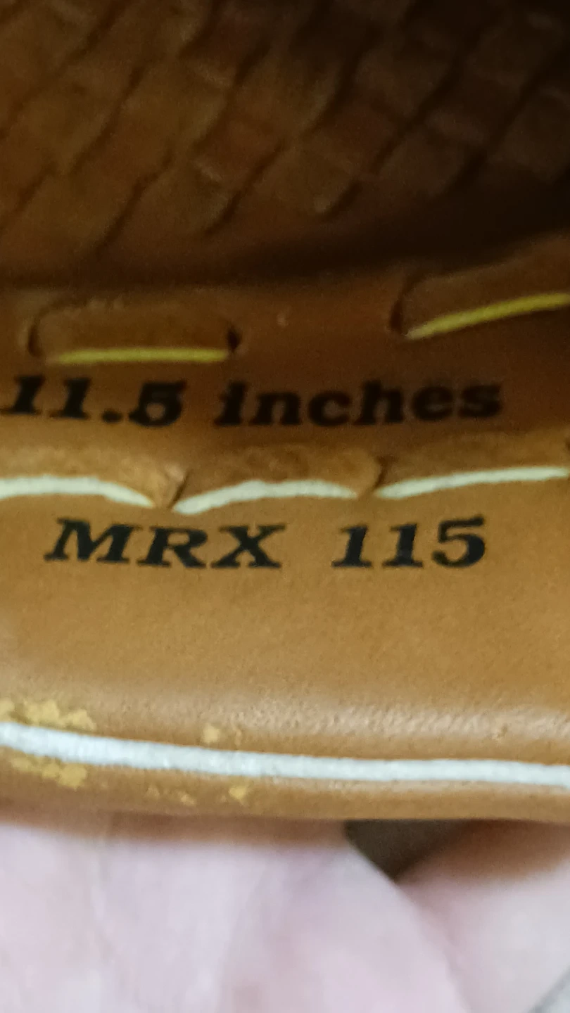 Mizuno MRX 115 baseball glove. It's a 11.5 inch glove from the Prospect Series. The glove is made of select leather. This glove is good for playing baseball.