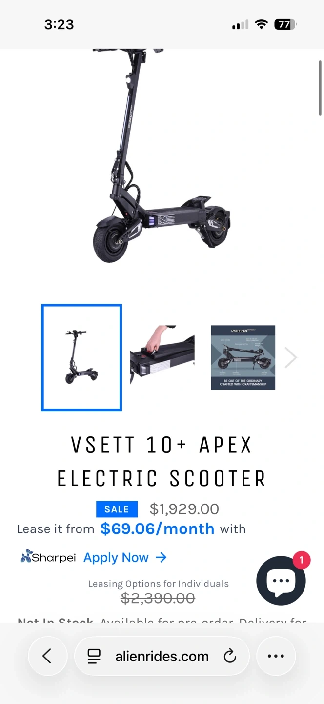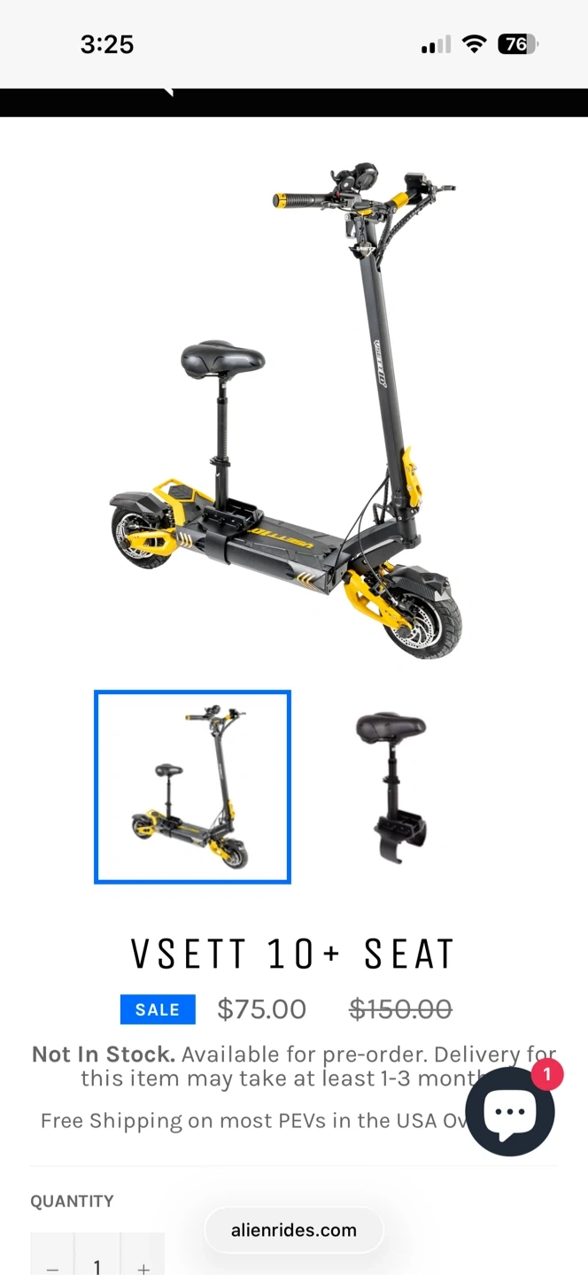 65I’m selling my Vsett 10+. It has 113 miles on it so it’s still pretty new. I’m selling it with a bunch of accessories included. The accessories included come out to more then $500. A steering damper (to keep the front wheel steady at higher speeds), a seat, hybrid off road tires for grip on and off road, the standard road tires, side mirrors, everything needed to service the brakes, the standard charger, a charger with a built in fan where you can set the max charge and amp output(for added safety while charging, with this you can set it and forget it), ankle guards, handlebar accessory (so a kid can ride in front of you), 2 sets of RFID key tags. The scooter is advertised as having a top speed of 50mph and a range of up to 100 miles in eco mode. 18+ only please. Full cash in hand for test drives.