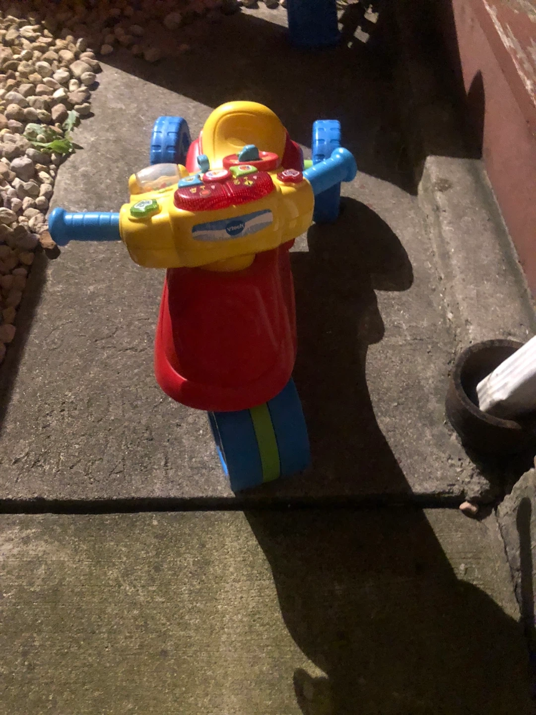 45I'm selling a VTech ride-on toy for toddlers. It's in good condition and ready for a new home! This colorful toy is perfect for young children who are learning to walk and explore. It features interactive buttons and sounds to keep your little one entertained