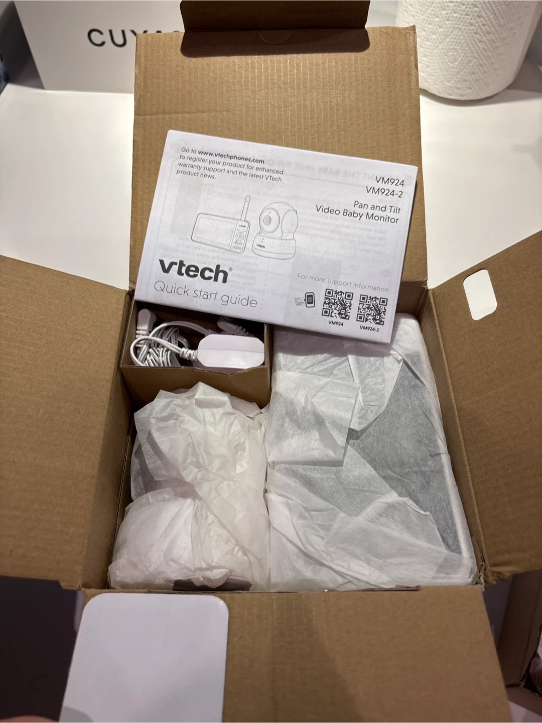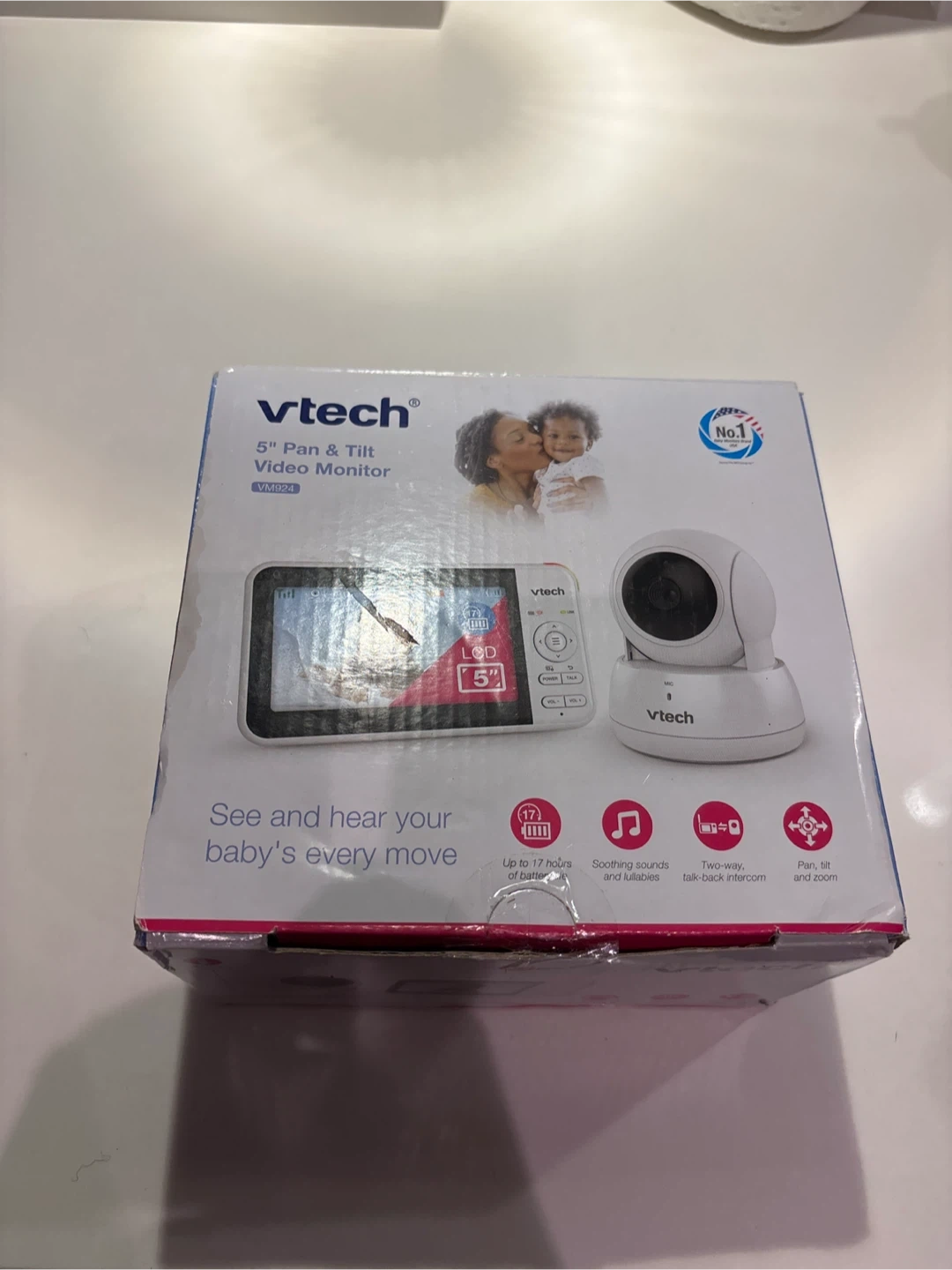 Selling a VTech VM924 5" Pan & Tilt Video Monitor in excellent condition! It comes with the original box and all components. See and hear your baby's every move with this monitor. It features soothing sounds and lullabies, a two-way talk-back intercom, and pan, tilt, and zoom functionality. Up to 17 hours of battery life!