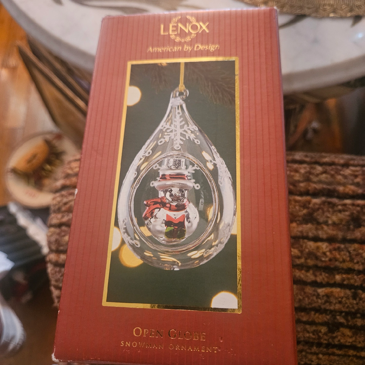 VTG Lenox Ornament Christmas Hanging Snowman Glass Open Globe 5: