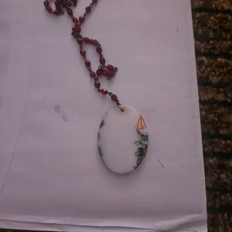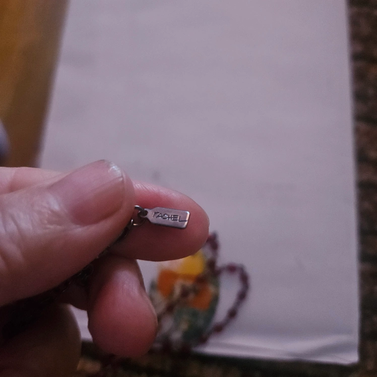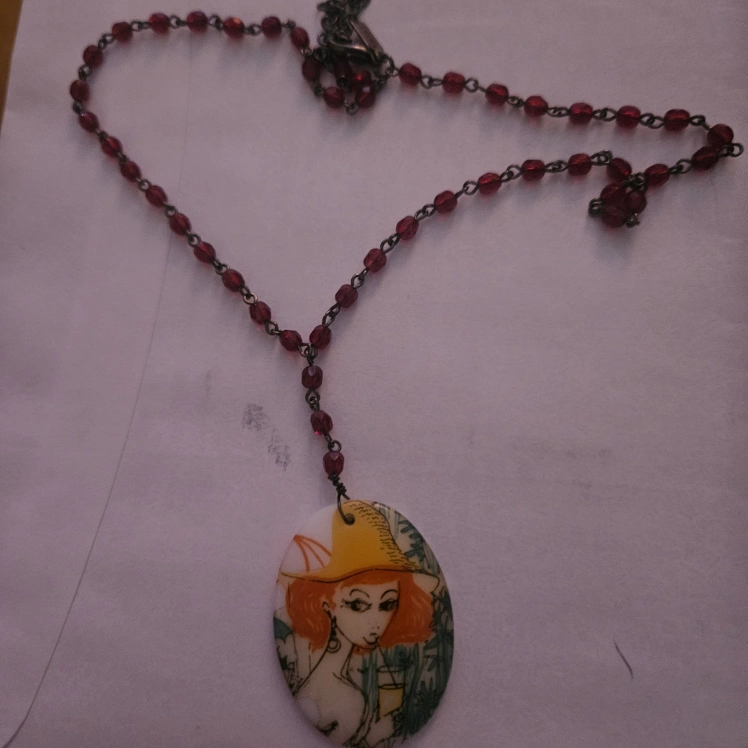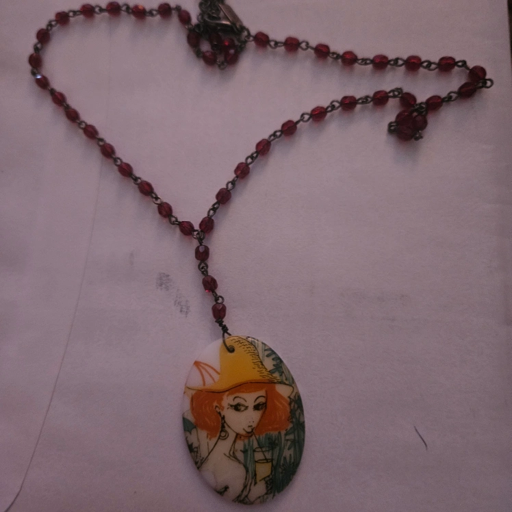 VTG celluloid Art Deco style,Rachel hand made, red glasses chain necklace.