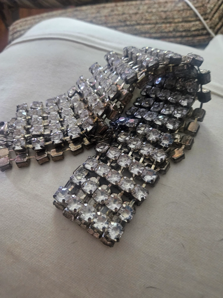 Silver Plated, wide 5 strand, Clear rhinestone,60s ,Women's belt,unbranded.