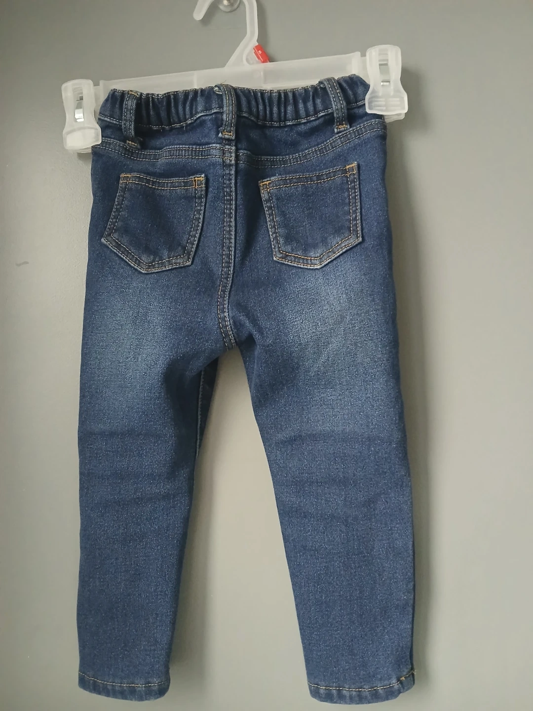 These cozy jeans are perfect for keeping little ones warm. They feature a denim exterior with a soft fleece lining inside for extra comfort and warmth. Elastic waistband for an easy fit. Great for cooler weather! 2-3 years