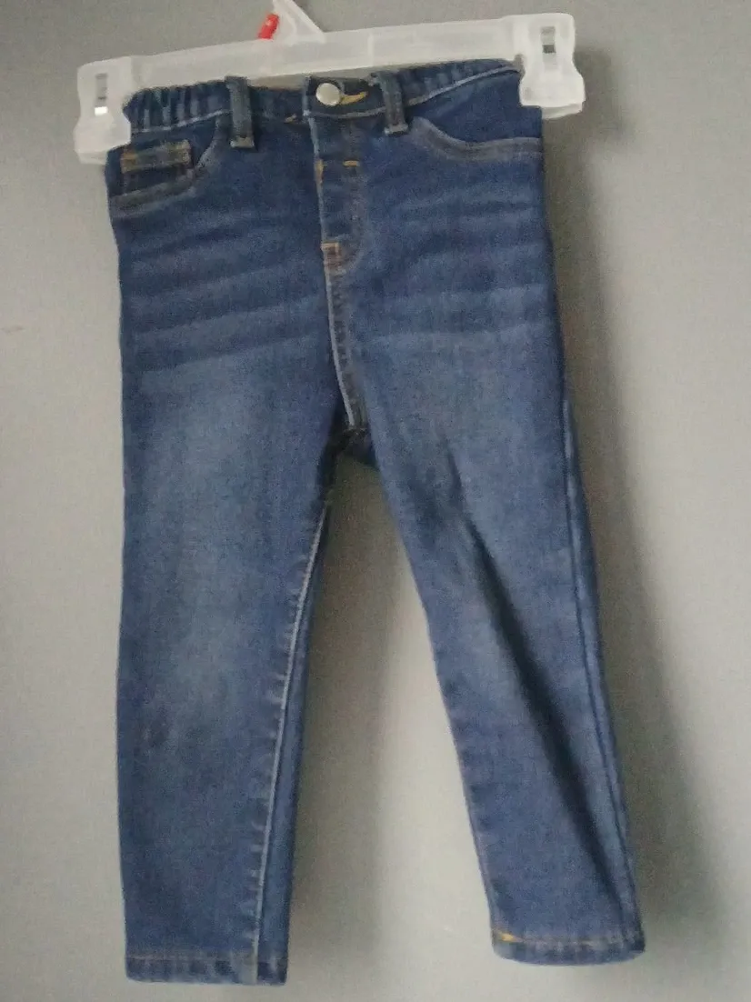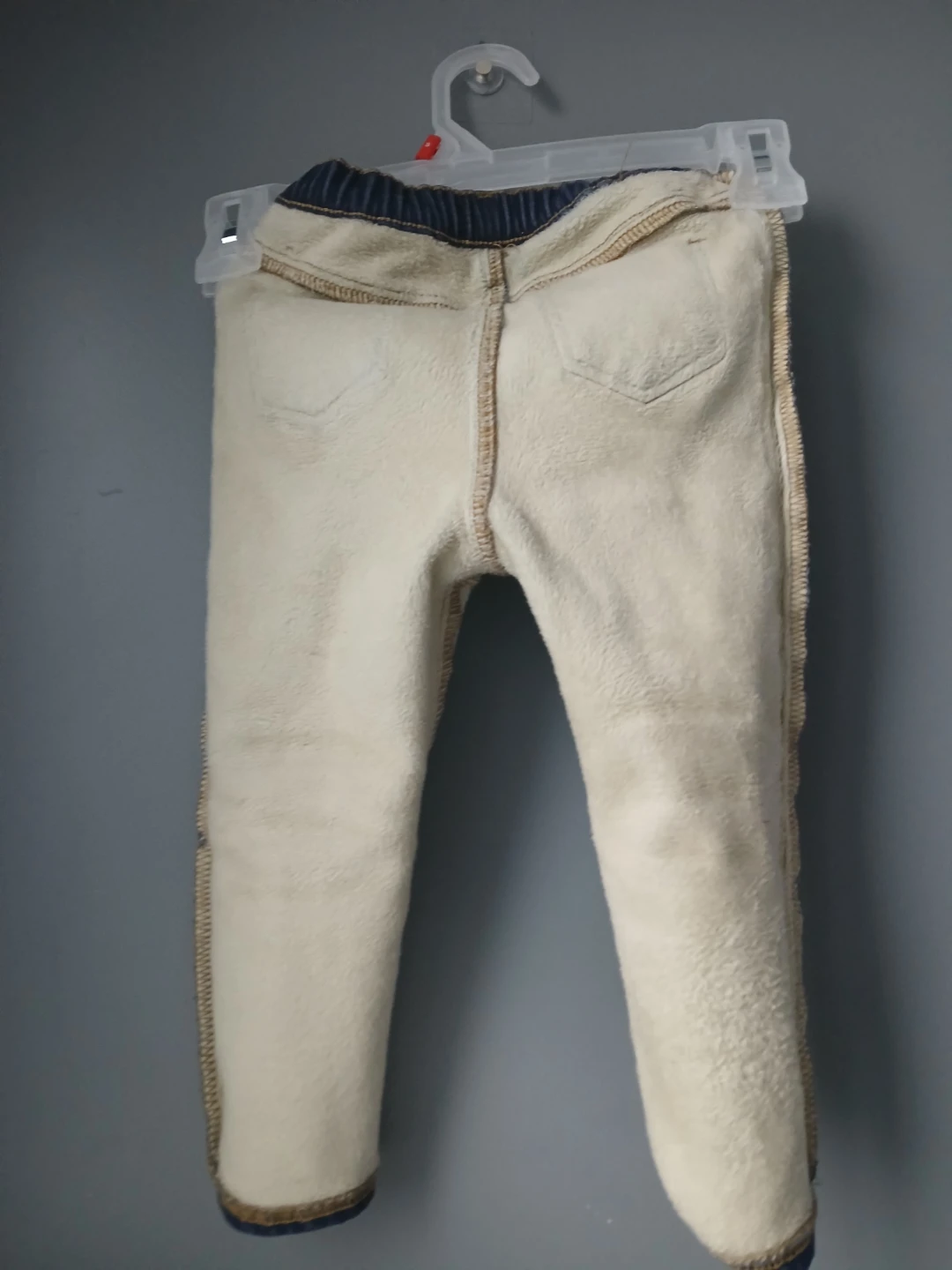 These cozy jeans are perfect for keeping little ones warm. They feature a denim exterior with a soft fleece lining inside for extra comfort and warmth. Elastic waistband for an easy fit. Great for cooler weather! 2-3 years
