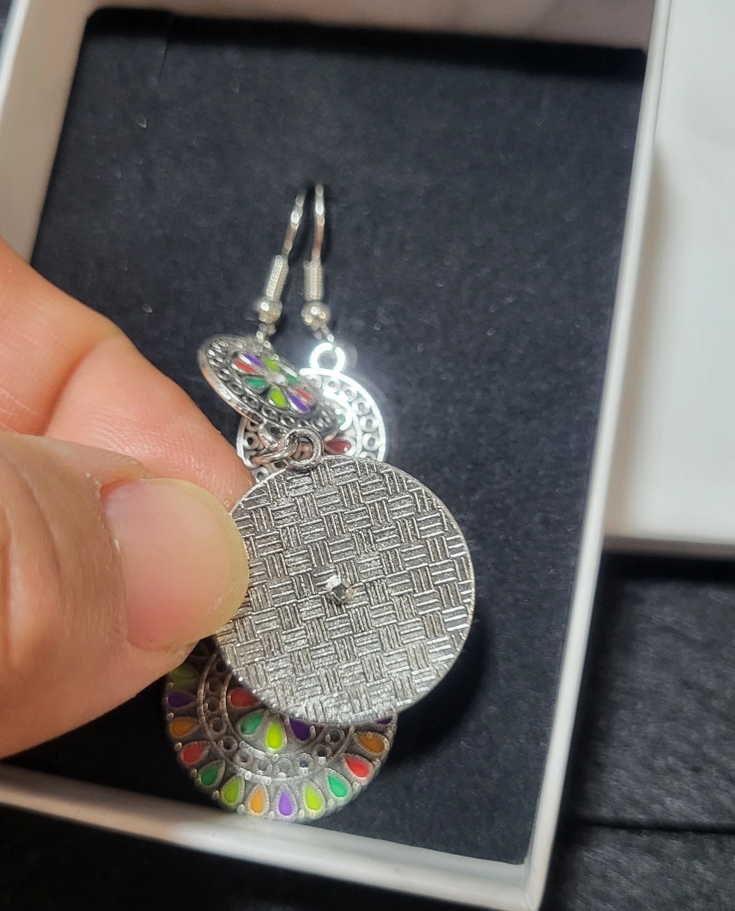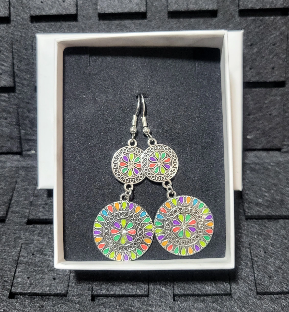 Add a pop of color to your outfit with these beautiful Boho Style Pendant Earrings. The round shape and hook closure make them perfect for casual occasions and the multicolor floral design is sure to catch everyone's eye. Made from unknown metal materials with no stone, these earrings are perfect for those who love a unique and eclectic look. The chandelier style and bohemian style add a touch of pop and fun to any outfit. These earrings are perfect for those who love to stand out and make a statement.