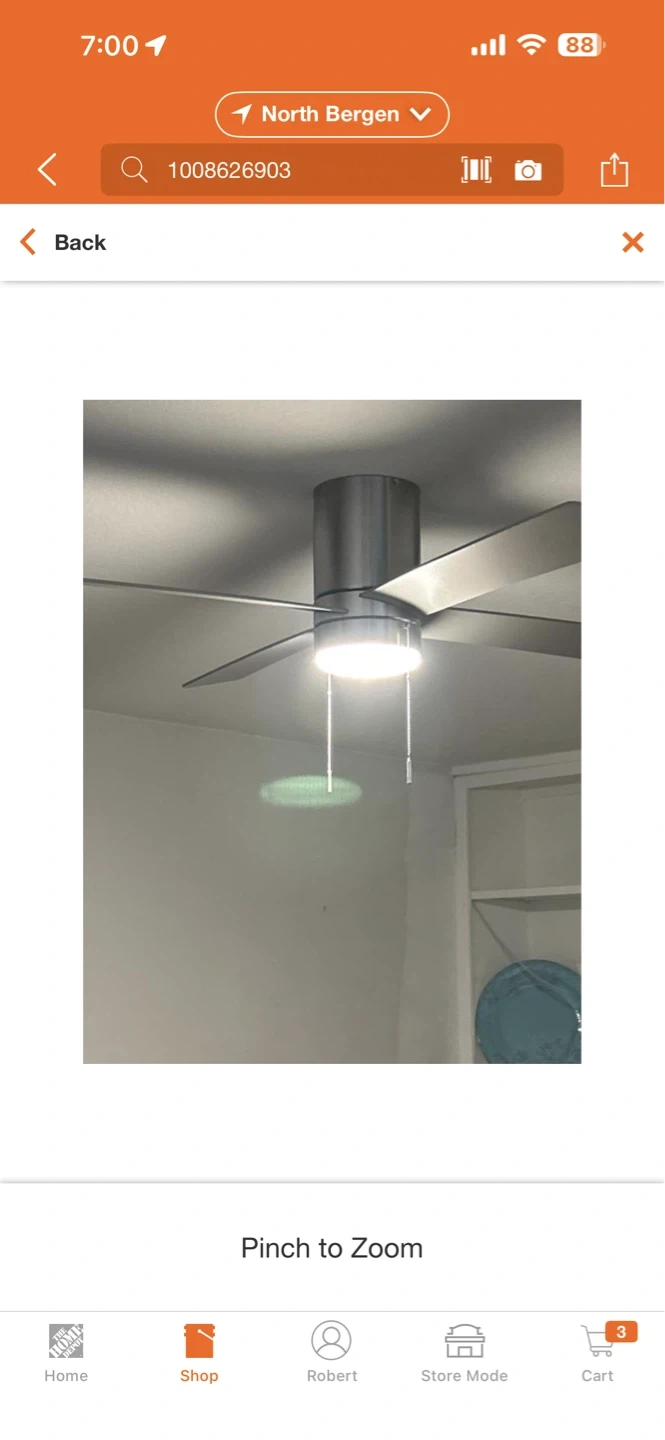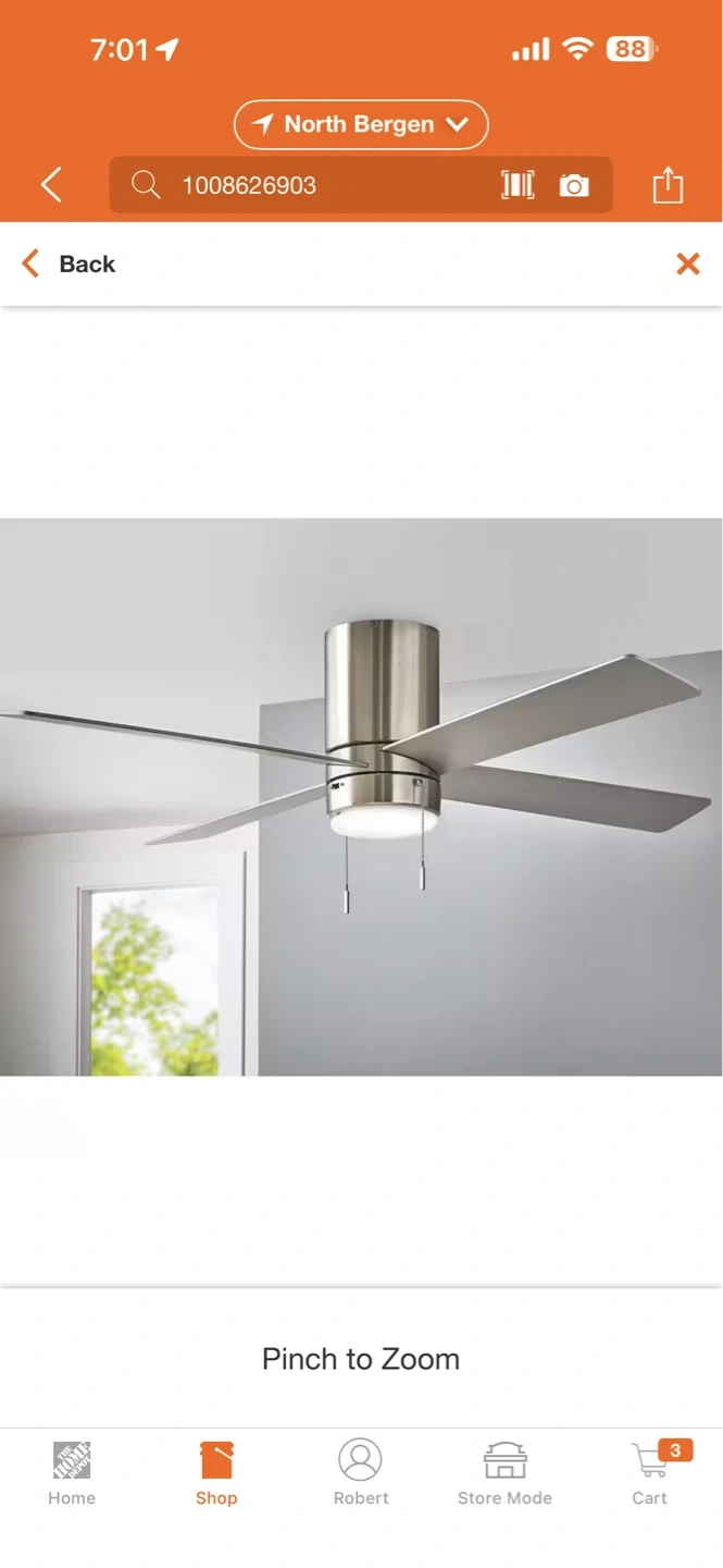 This is a Hampton Bay 52 inch Scenic indoor ceiling fan. It features a brushed nickel finish and integrated LED lighting. The fan dimensions are 52 inches W x 12.3 inches H.