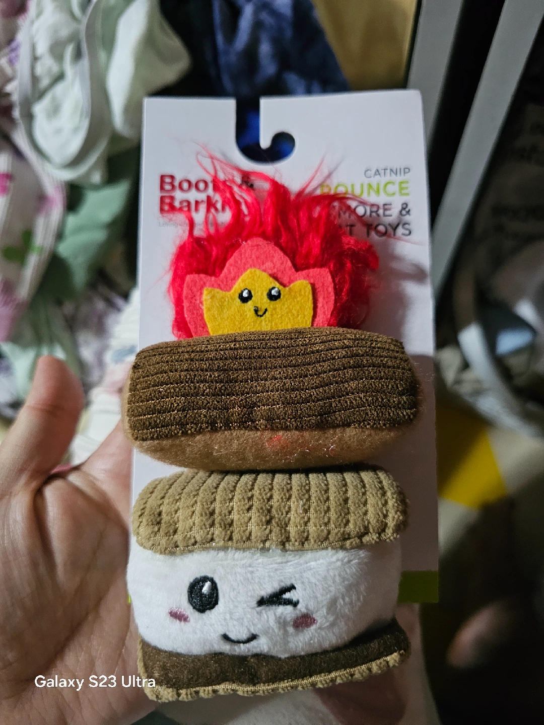 These Boots & Barkley cat toys are brand new and ready for your furry friend! The set includes a catnip-filled s'more and fire toy to keep your cat entertained. They're made with 100% recycled polyester fill