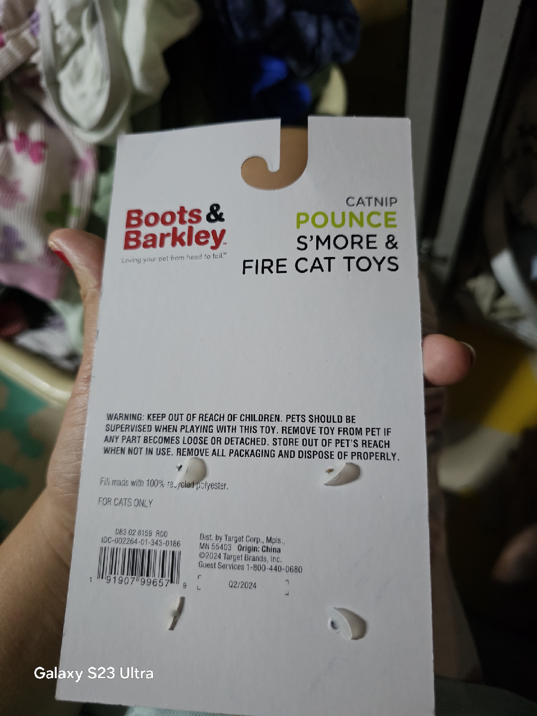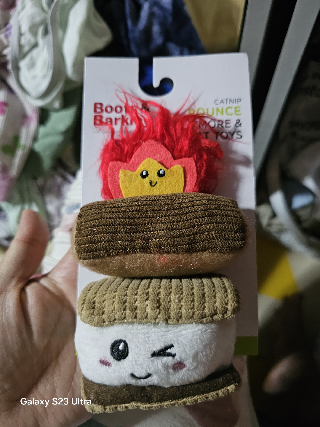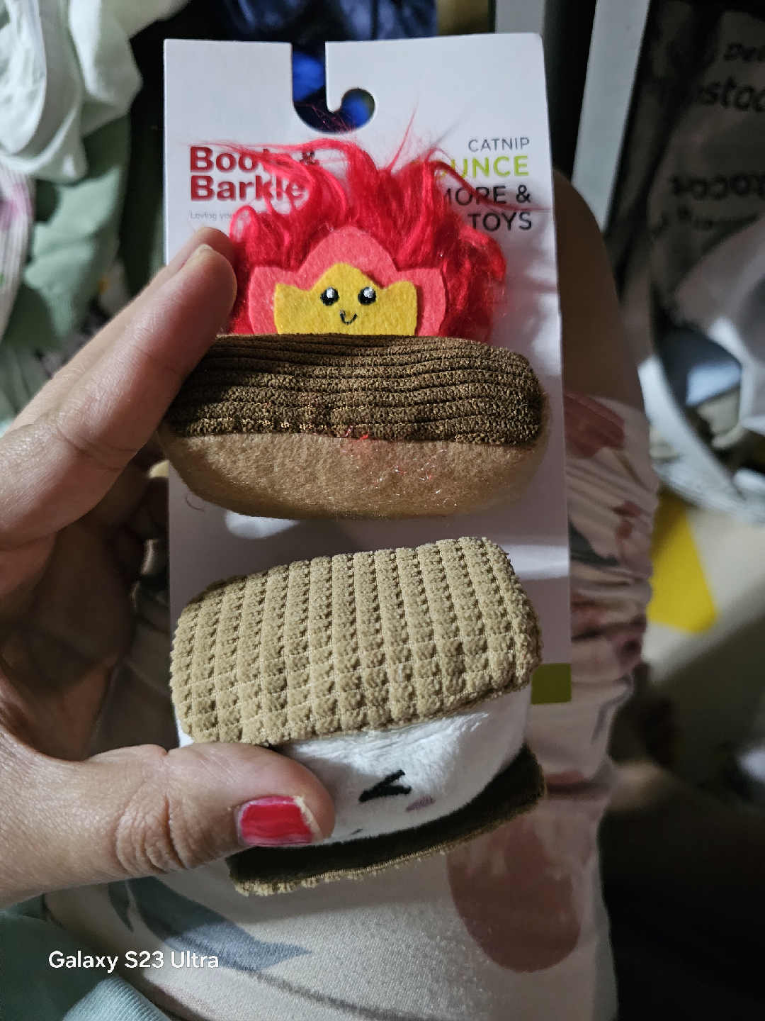 These Boots & Barkley cat toys are brand new and ready for your furry friend! The set includes a catnip-filled s'more and fire toy to keep your cat entertained. They're made with 100% recycled polyester fill