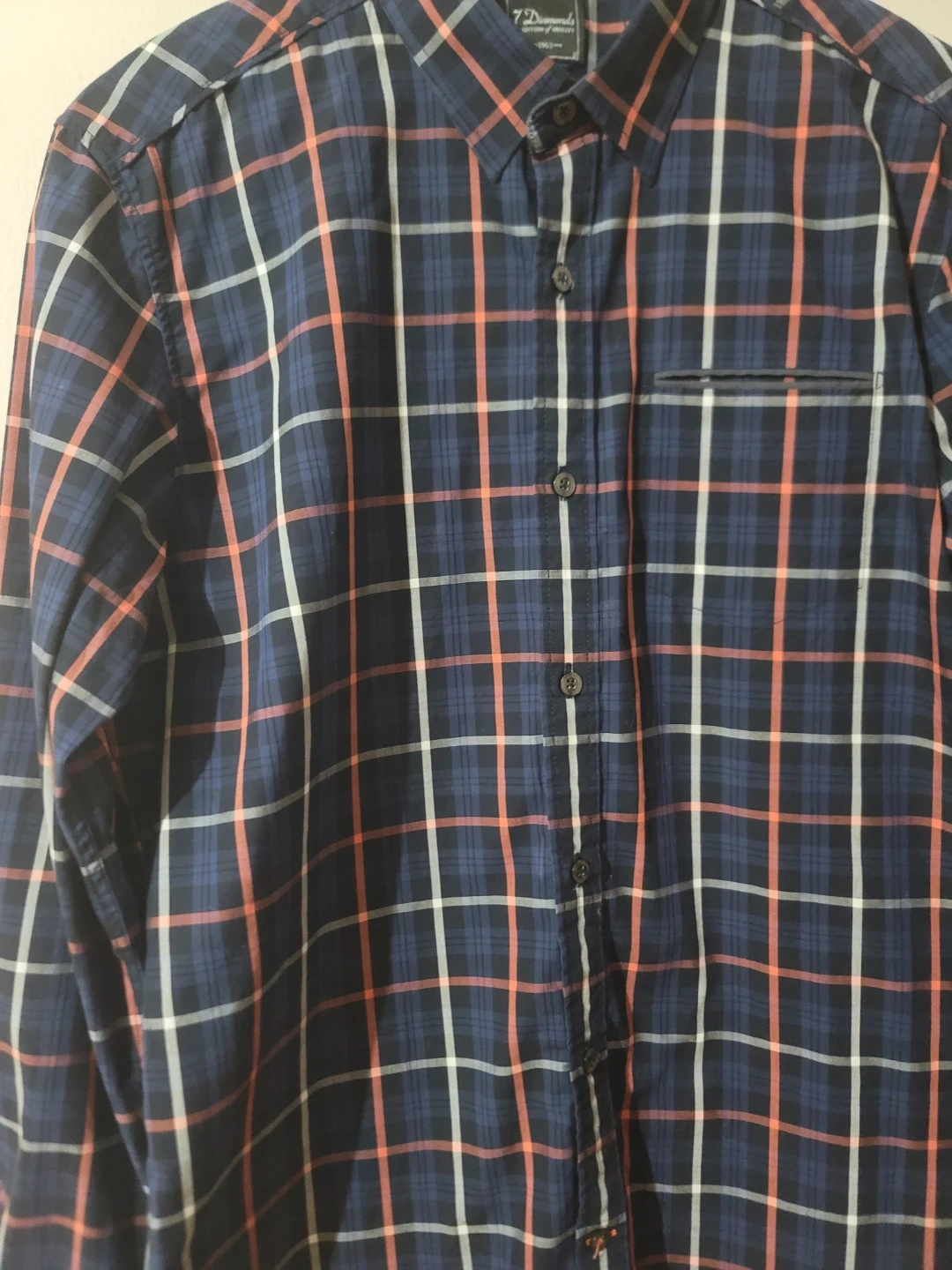 Elevate your casual wardrobe with this classic navy blue and red plaid long-sleeve shirt from 7 Diamonds. Designed with a timeless preppy aesthetic, this button-down features a sophisticated check pattern that effortlessly blends rugged outdoor vibes with a polished smart-casual look.