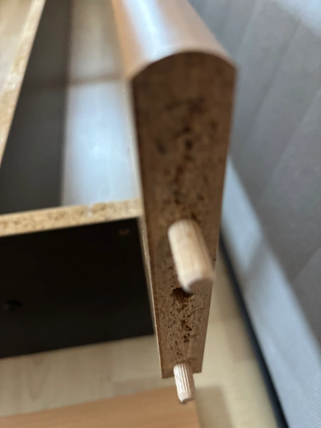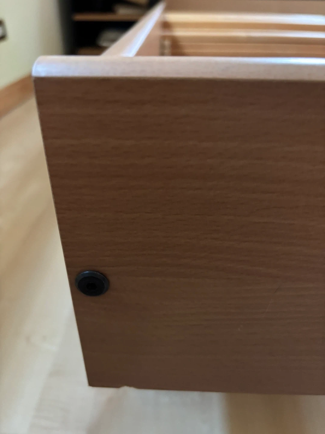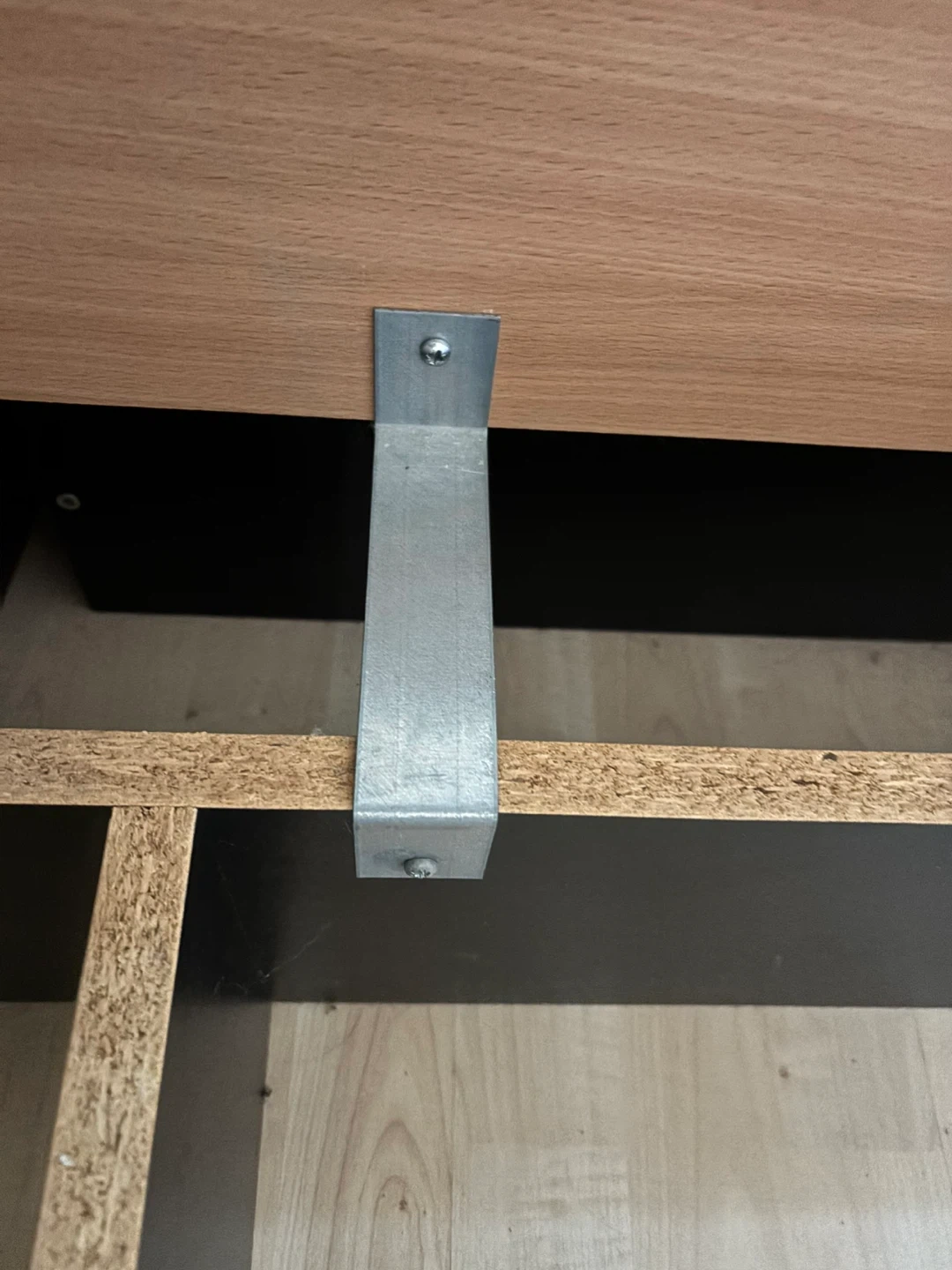 This is a wooden bed frame with a slatted base. It's made of wood and metal components for support. The frame is designed to hold a queen size mattress. There is no headboard or mattress included.
