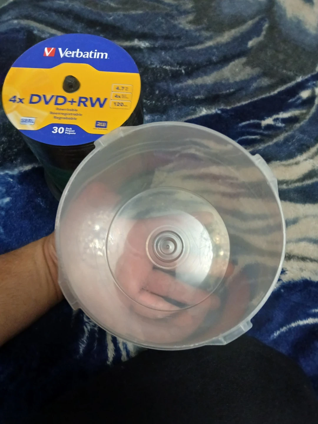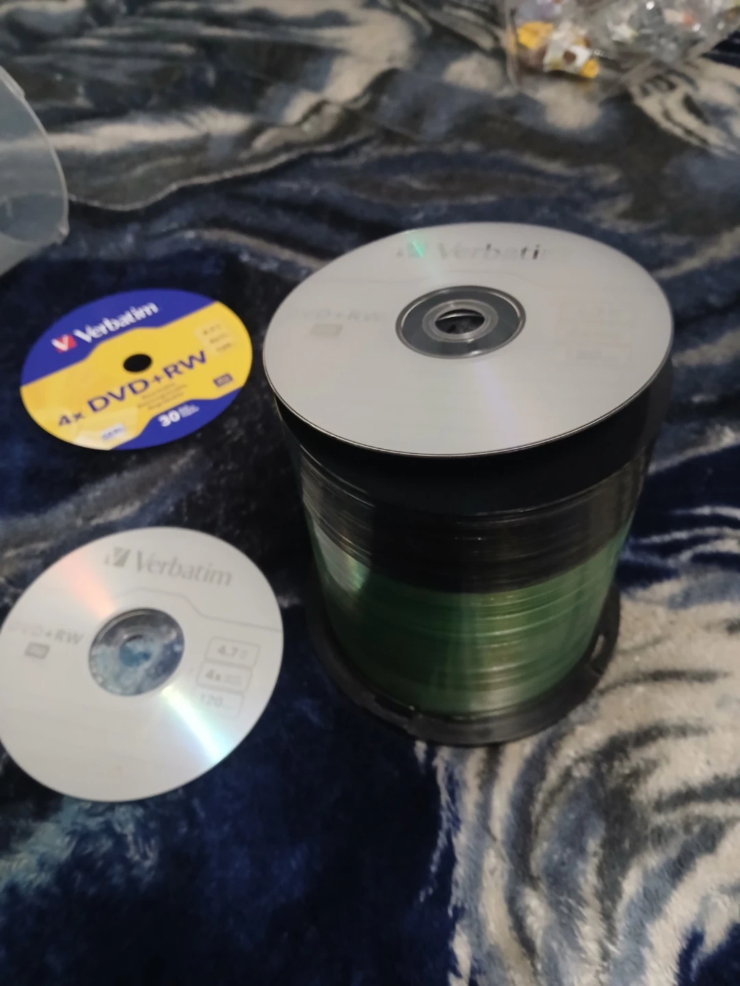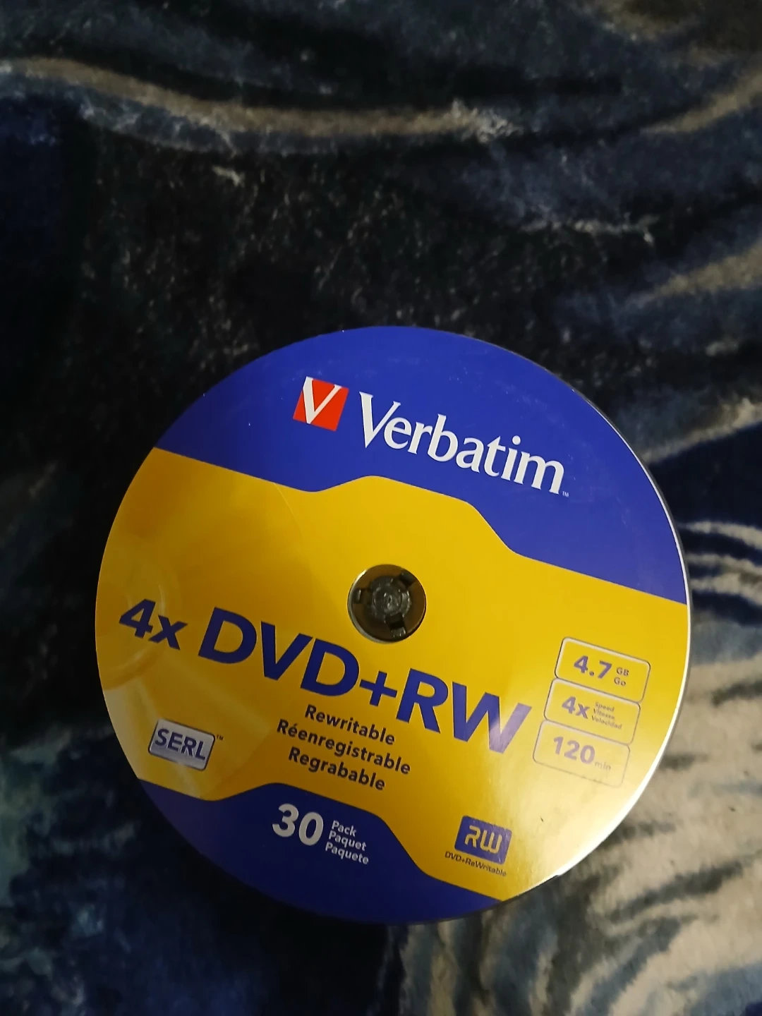 This is a 30-pack of Verbatim 4x DVD+RW discs. Each disc holds 4.7GB of data and has a recording time of 120 minutes. They're rewritable and have a 4x write speed.