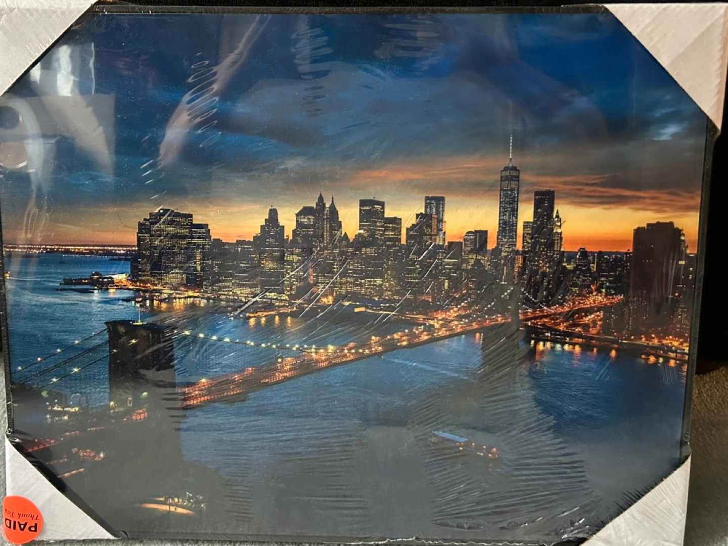 Stunning framed picture of Manhattan, New York City Evening Skyline and River